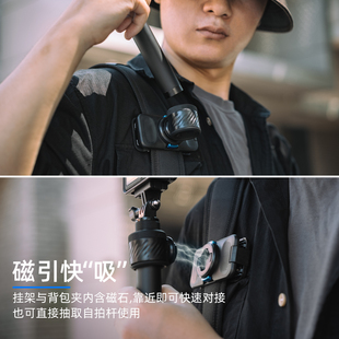 适用dji大疆gopro影石运动相机磁吸自拍杆挂架action5pro背包快挂夹acepro2延长杆action6 4登山徒步配件