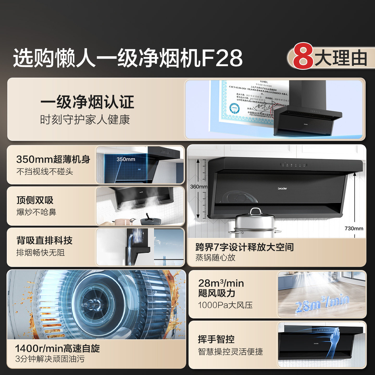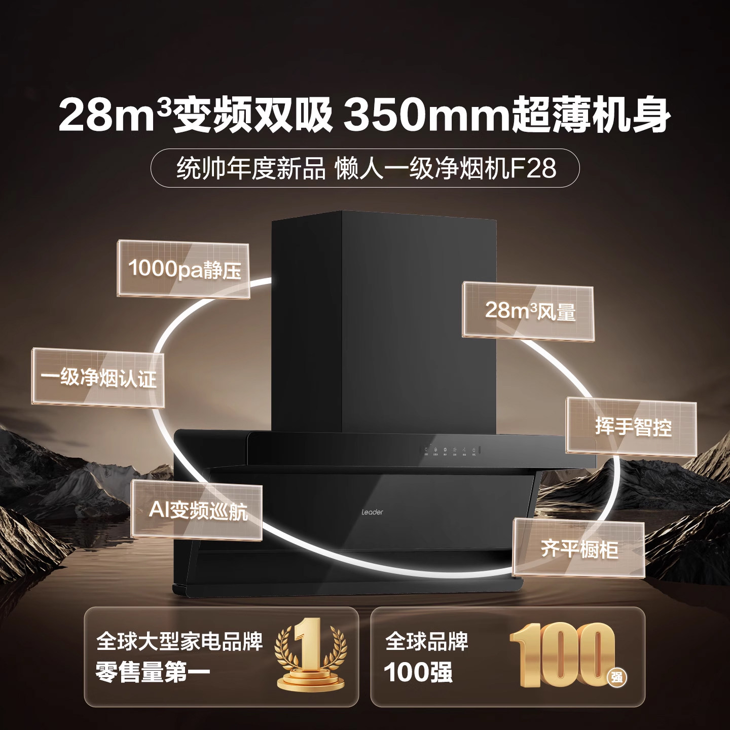 换新补贴 海尔出品统帅懒人一级净烟机F28变频烟灶套装 顶侧双吸