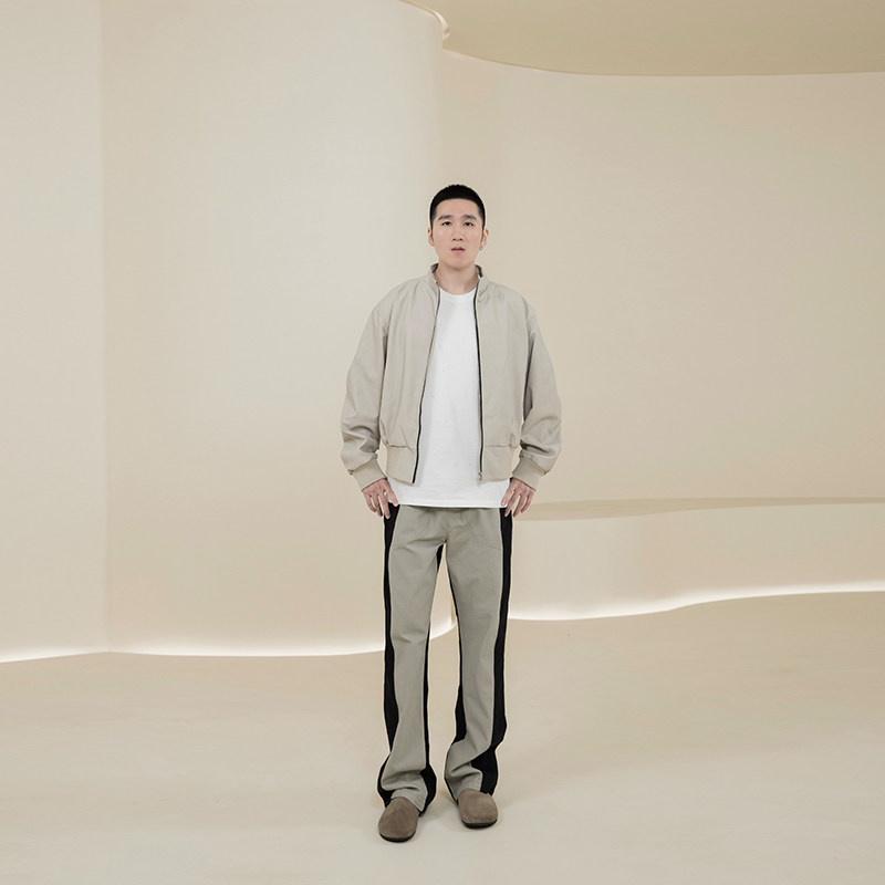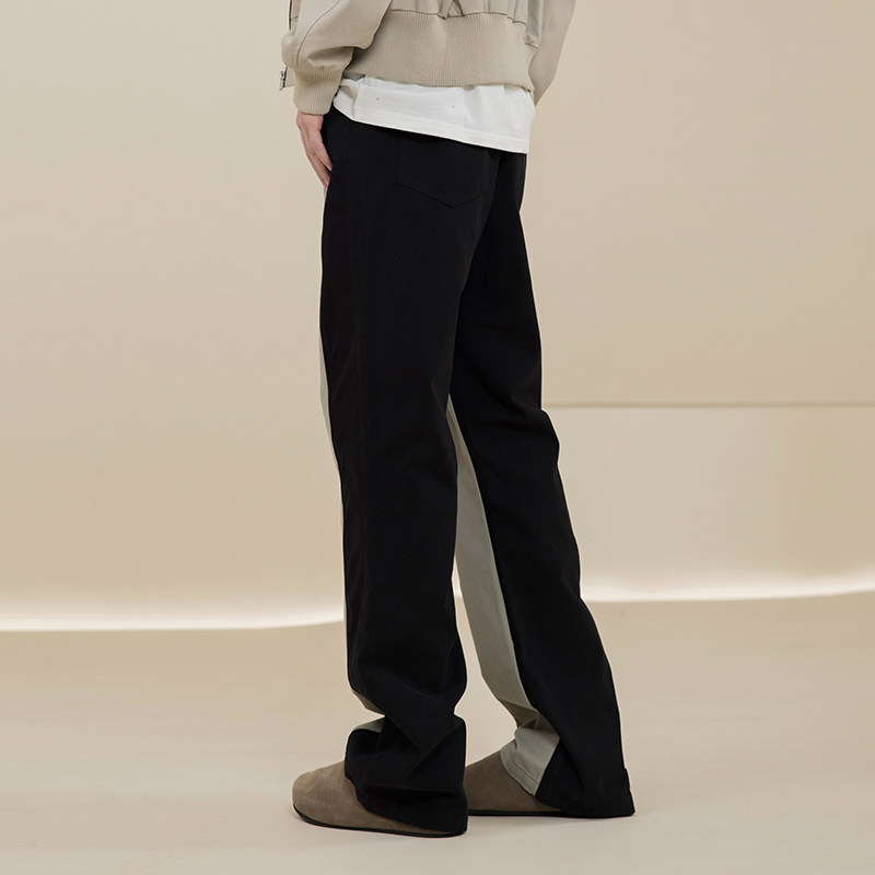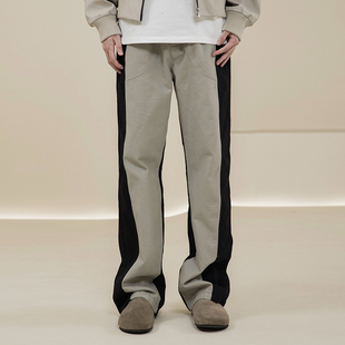 宽松简约百搭弯刀裤 通勤直筒拼接微喇长裤 子男 Octopusl美式 烦恼