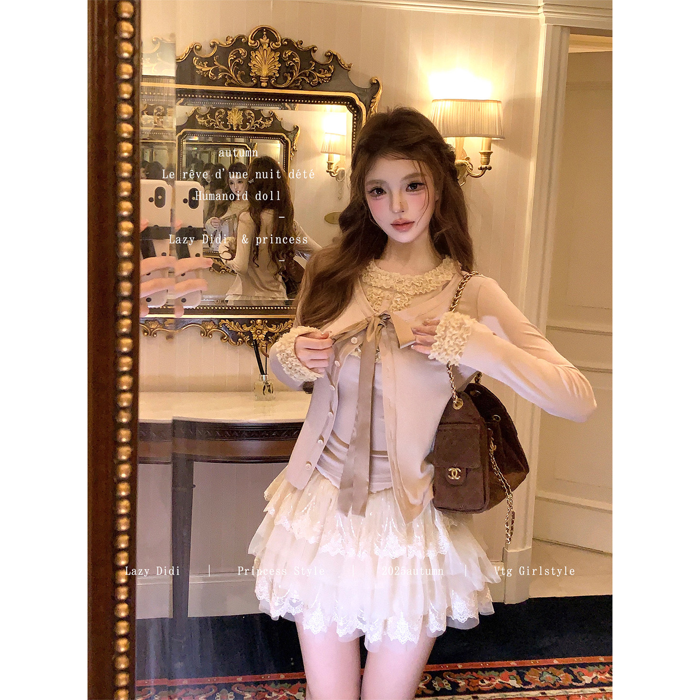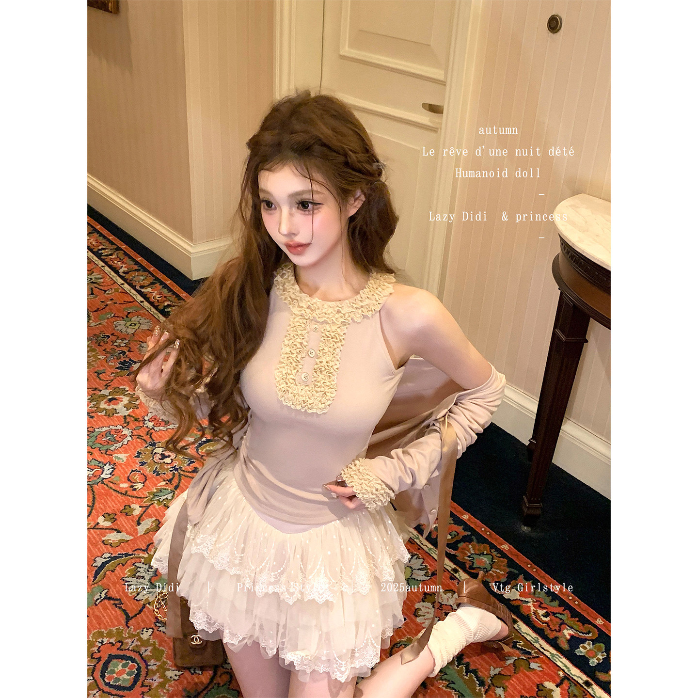 英比例吊带开衫 元 套组花边领拼接内搭上衣外套 Didi薇妮舞会 Lazy
