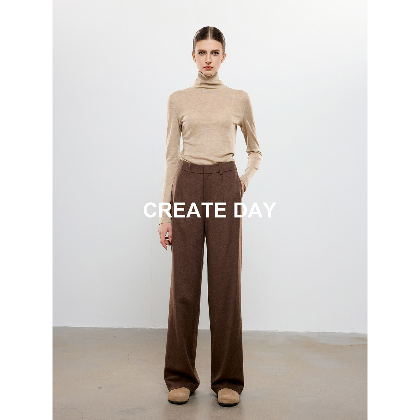 抗皱长裤 CREATE 女秋冬高级桑蚕丝质感西裤 LP80%绵羊毛休闲裤 DAY