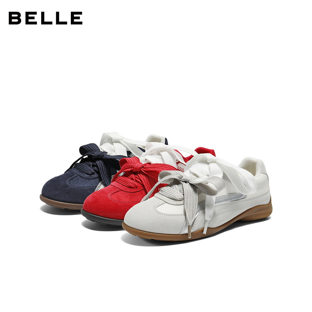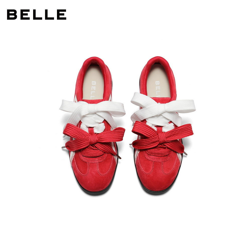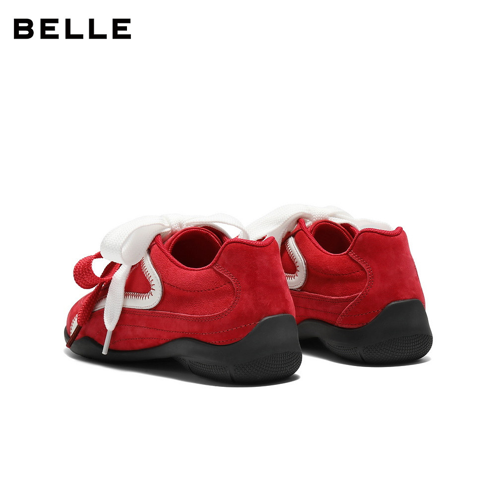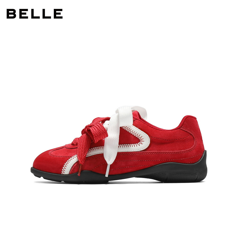 休闲板鞋 新增高鞋 A6N4DAM5预 百丽板栗厚底红色德训鞋 张凌赫同款