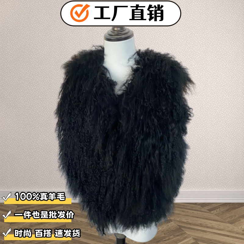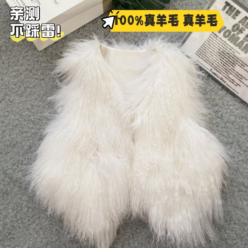 滩羊毛外套毛毛马甲女 背心真皮草短款 皮草马甲女2025秋冬新款 韩版