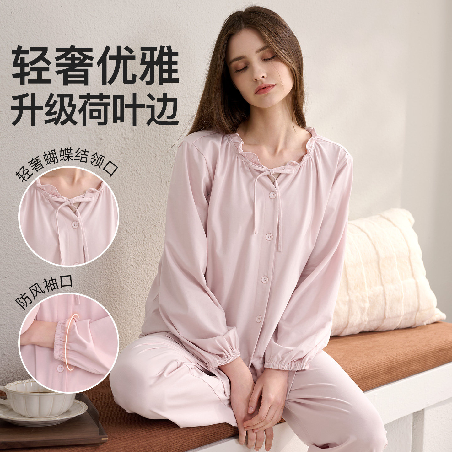 秋季 送胸垫 孕妇睡产后喂奶怀孕哺乳衣家居服套装 加厚莫代尔