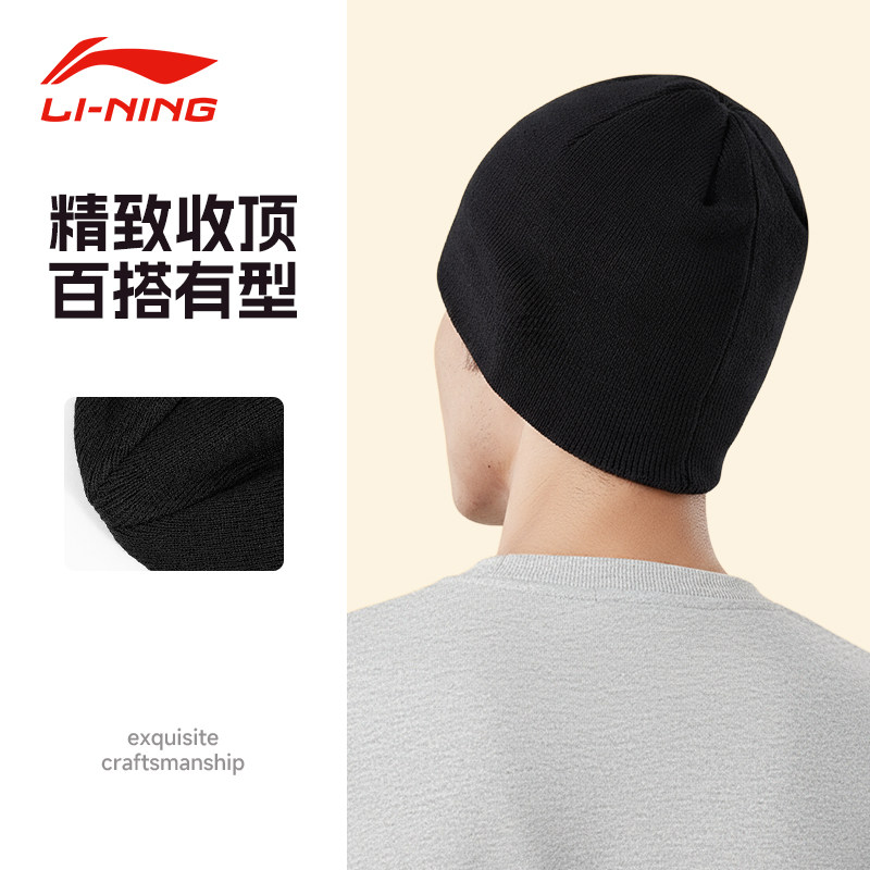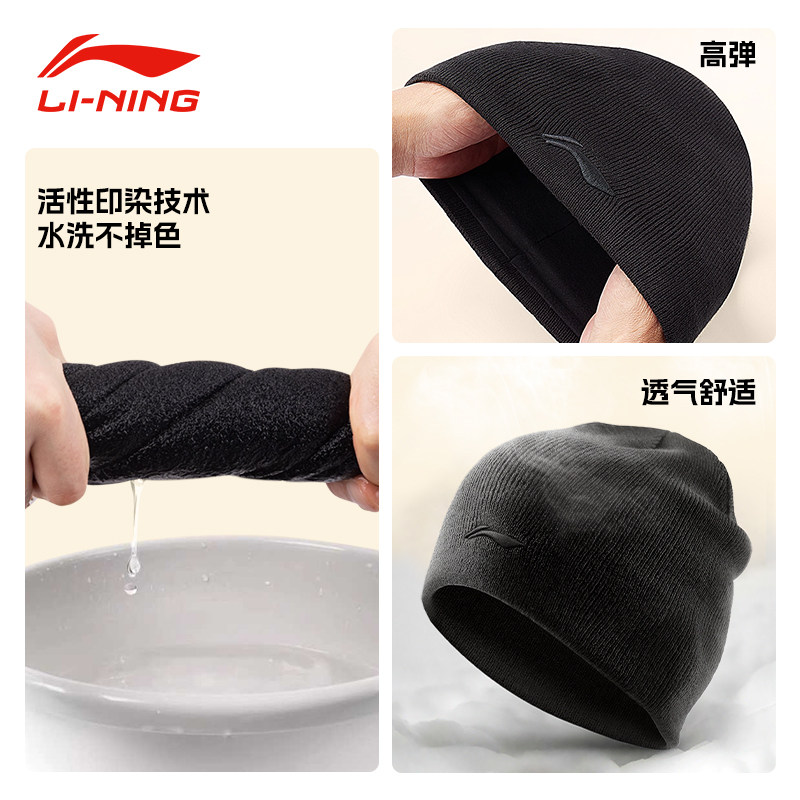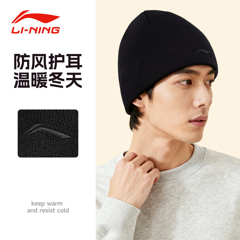 李宁针织帽男秋冬帽子保暖毛线冷帽跑步运动加绒加厚滑雪女大头围