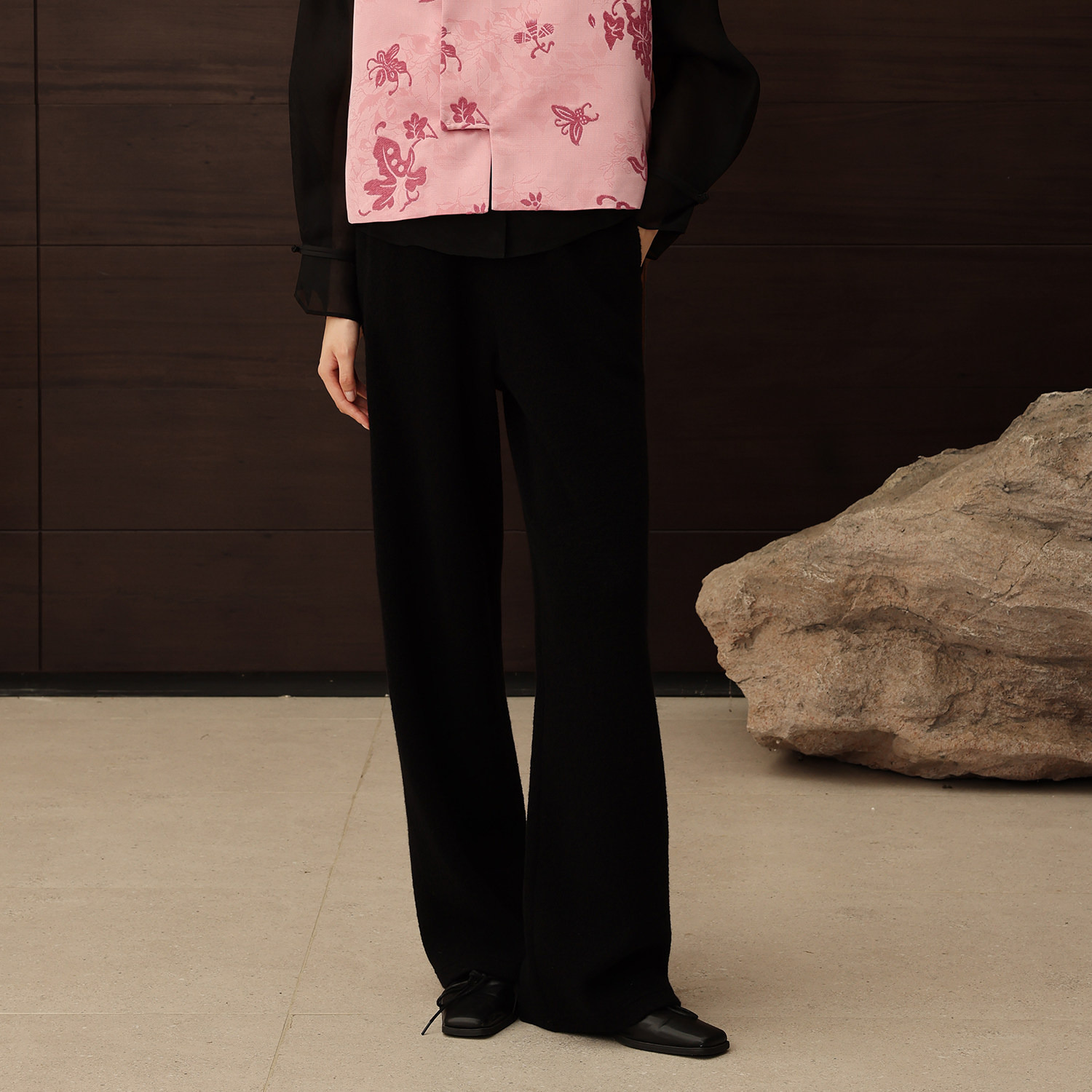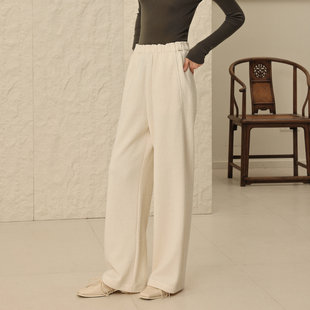 尧茸 高腰松紧腰休闲裤 秋新款 女新中式 羊毛针织阔腿裤 如意连云