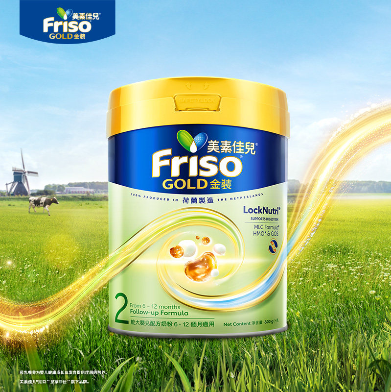 MLC易吸收乳脂800克2段 美素佳儿全新6HMO结构 3罐 金装 Friso港版