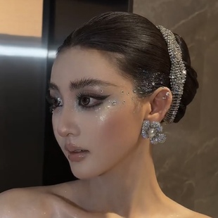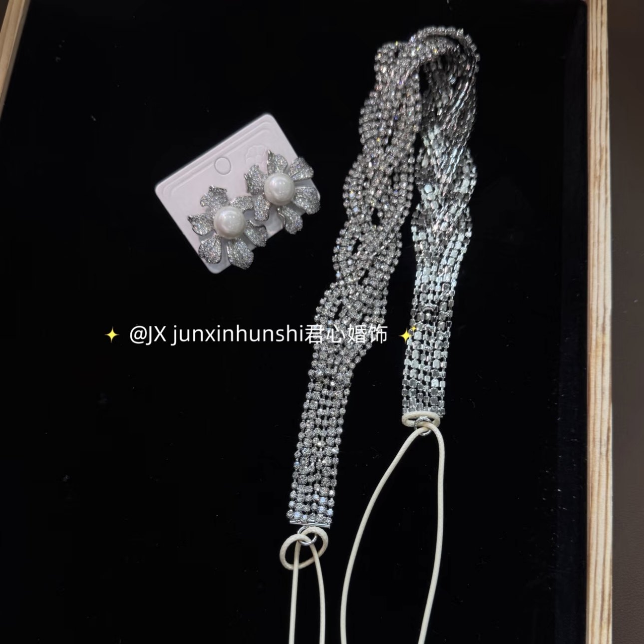 君心家 发带两用加耳环新娘泰妆轻奢头饰 银色闪钻项链