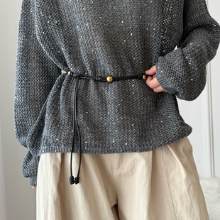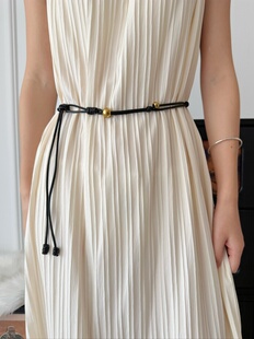 复古串珠软皮绳腰带细打结长款 毛衣腰间配饰简约高级感腰绳腰链潮