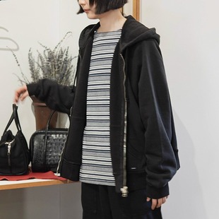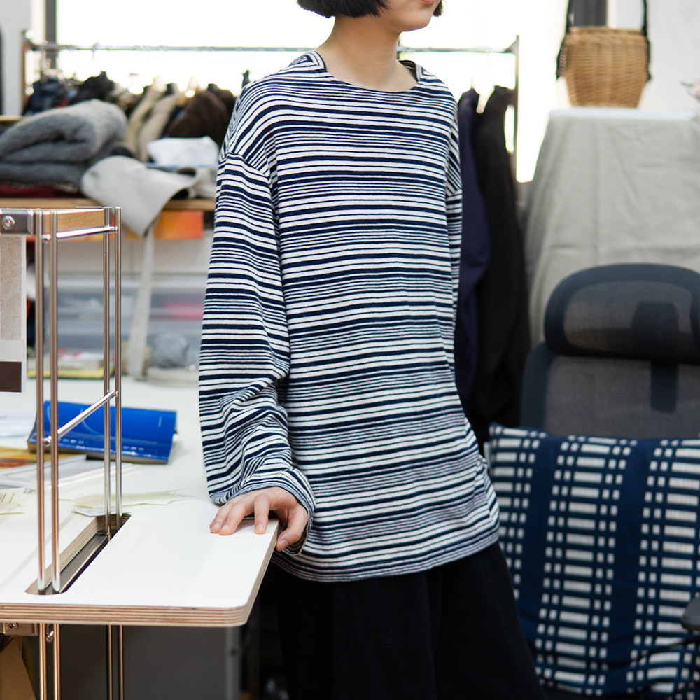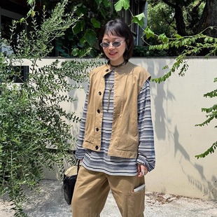 三角领汉麻藏青色条纹T恤 caicaicai NEW