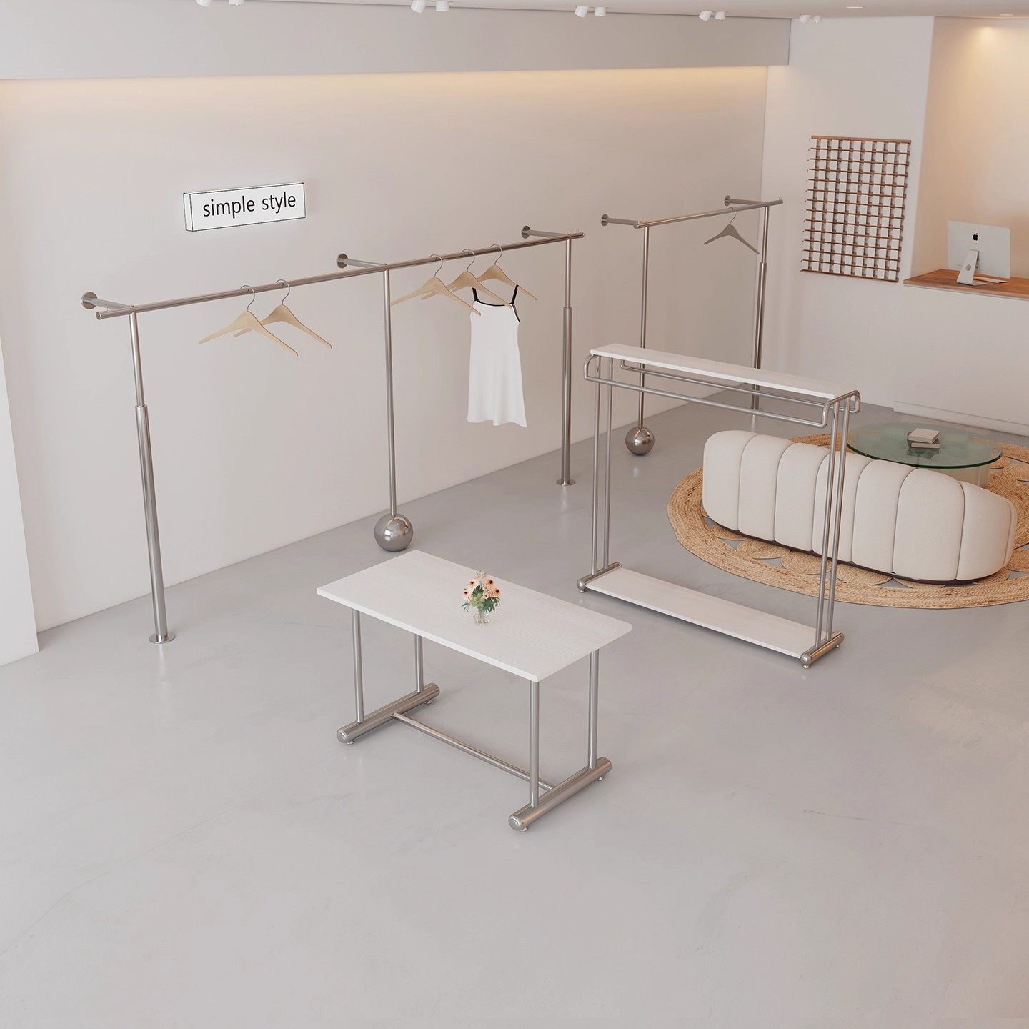 中岛架子 店专用陈列架可移动带轮子落地式 服装 店展示架不锈钢女装