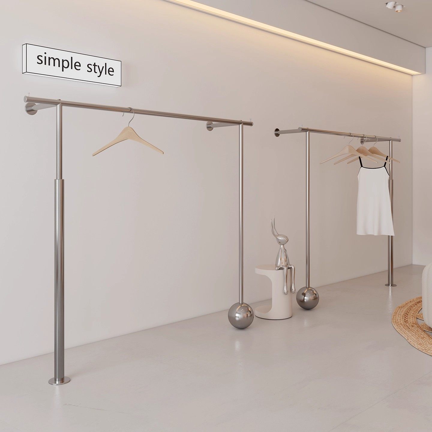 服装 细金色实心上墙高档壁挂架 店不锈钢拉丝银色正挂展示架女童装