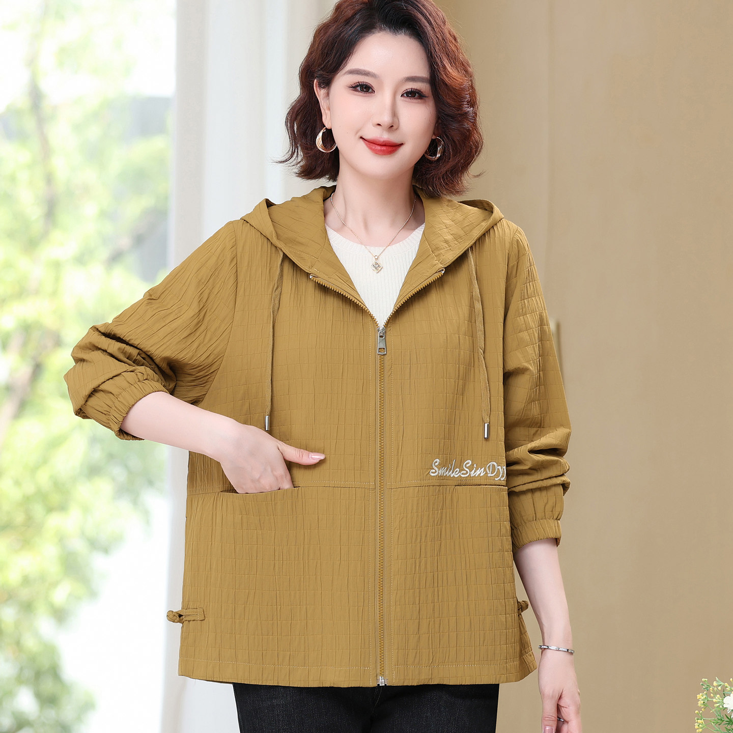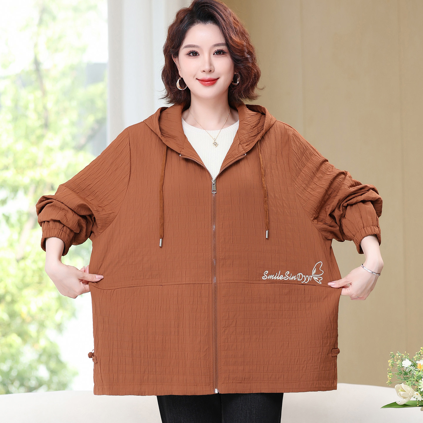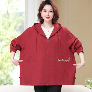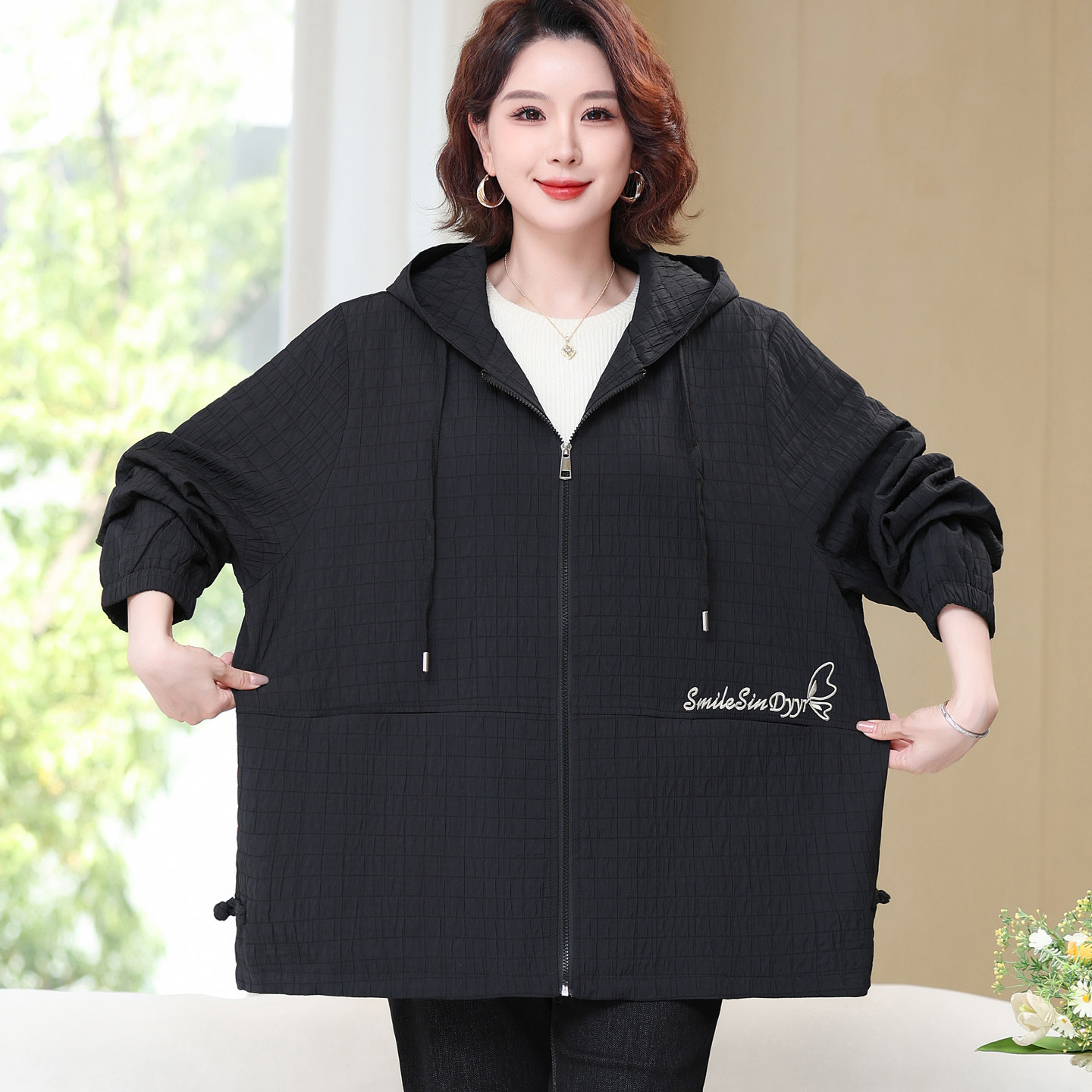 连帽夹克上衣宽松 200斤胖妈妈装 中老年女装 春秋外套加肥加大码