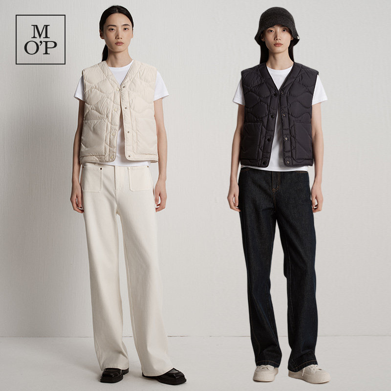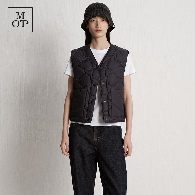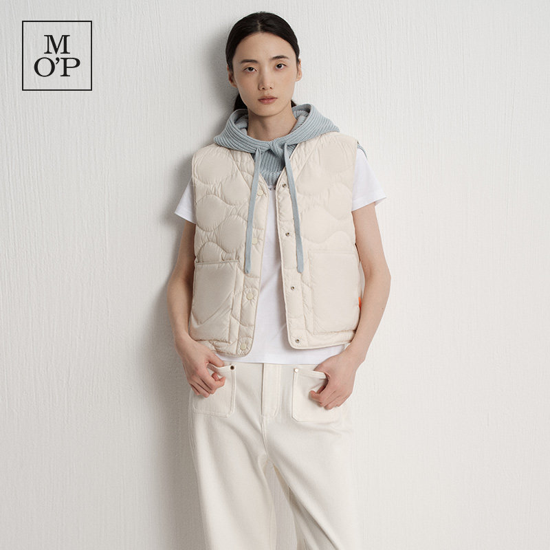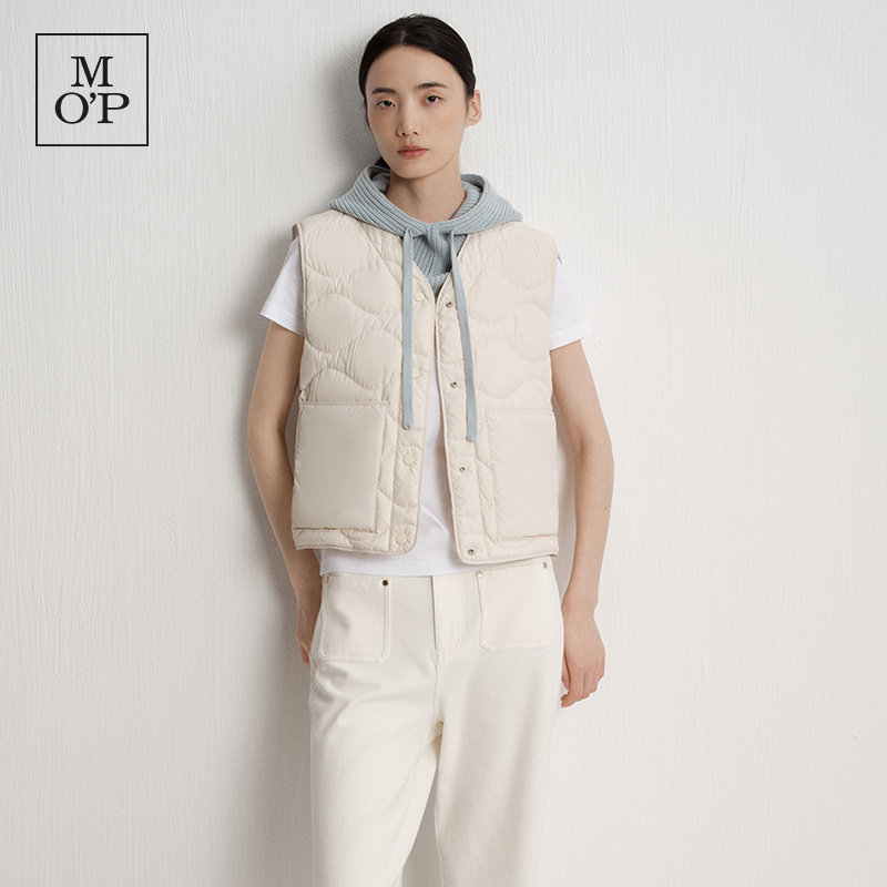 新款 25冬季 MOP 环保贴袋V领贴袋轻薄鹅绒羽绒马甲女 何洁同款