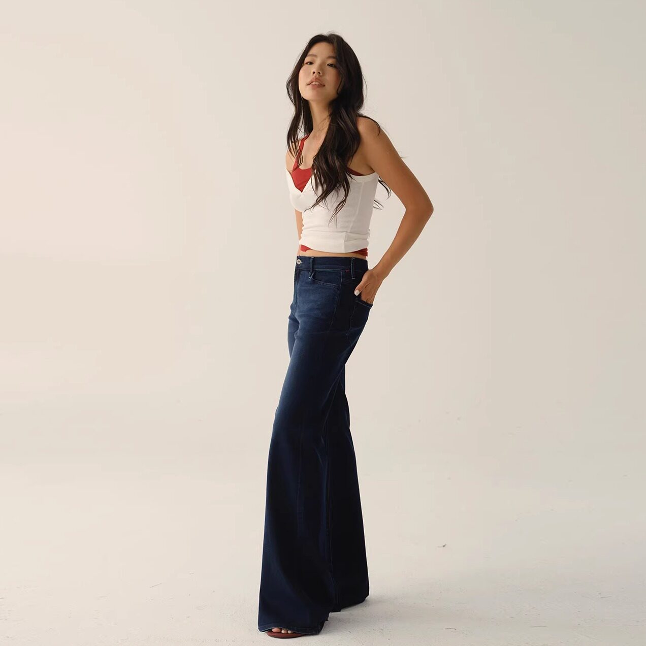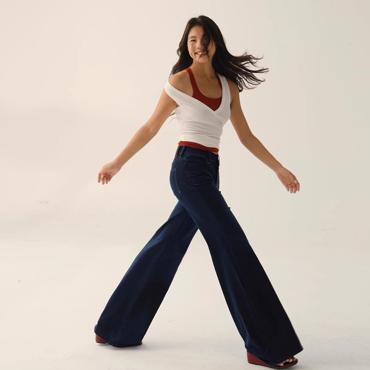 「巴黎漫行」S002 百搭基础复古中腰高弹喇叭裤 CASUAL STROLL