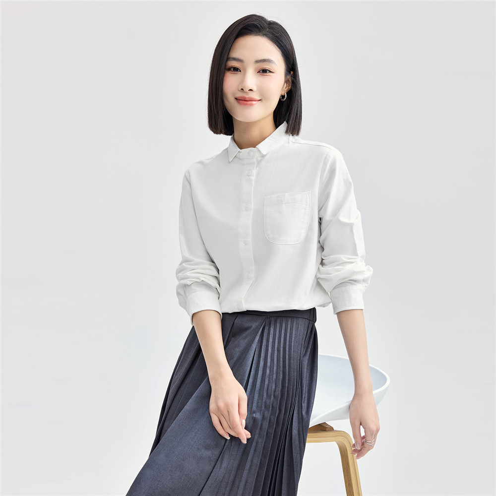 女05345874 衬衫 佐丹奴2026年春新款 纯棉牛津纺通勤口袋小翻领长袖