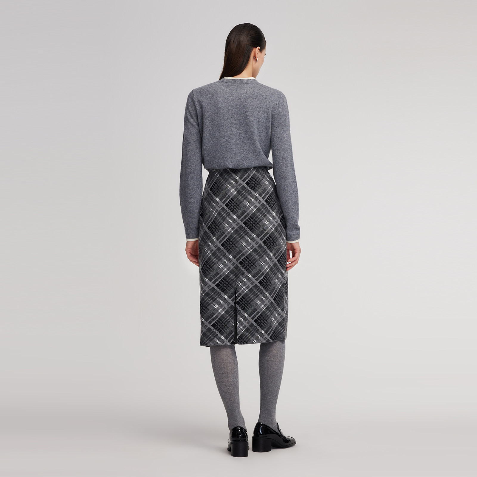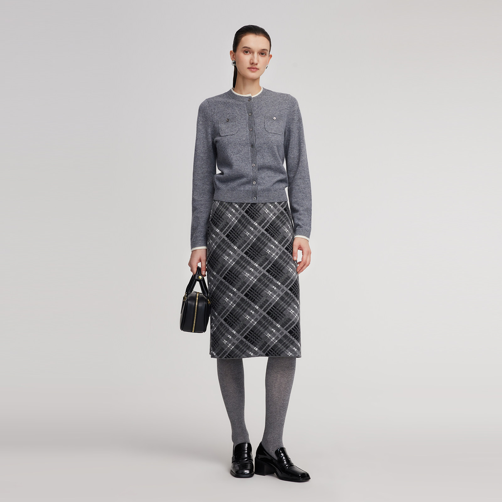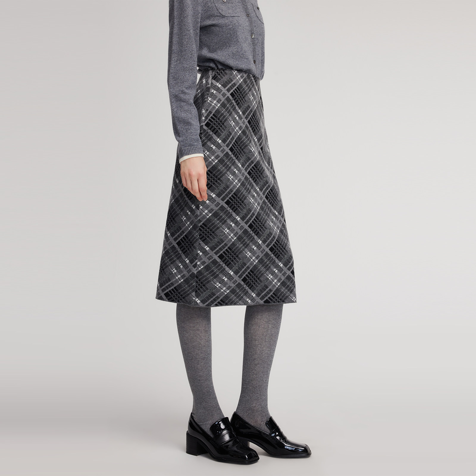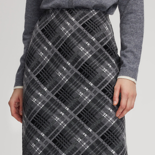 509092 气质流苏摆不规则半身裙子女装 三福格子长裙女2025新款 冬季