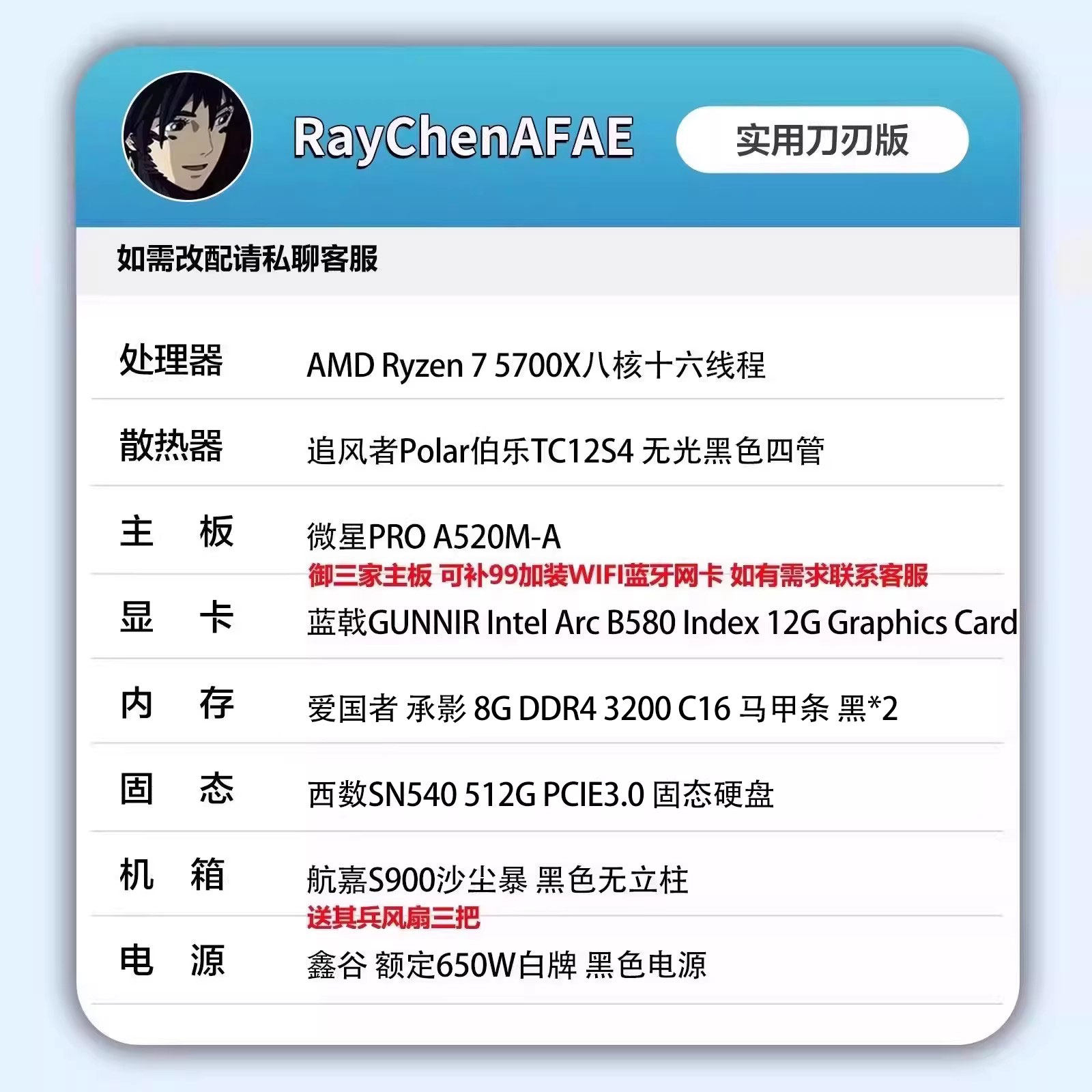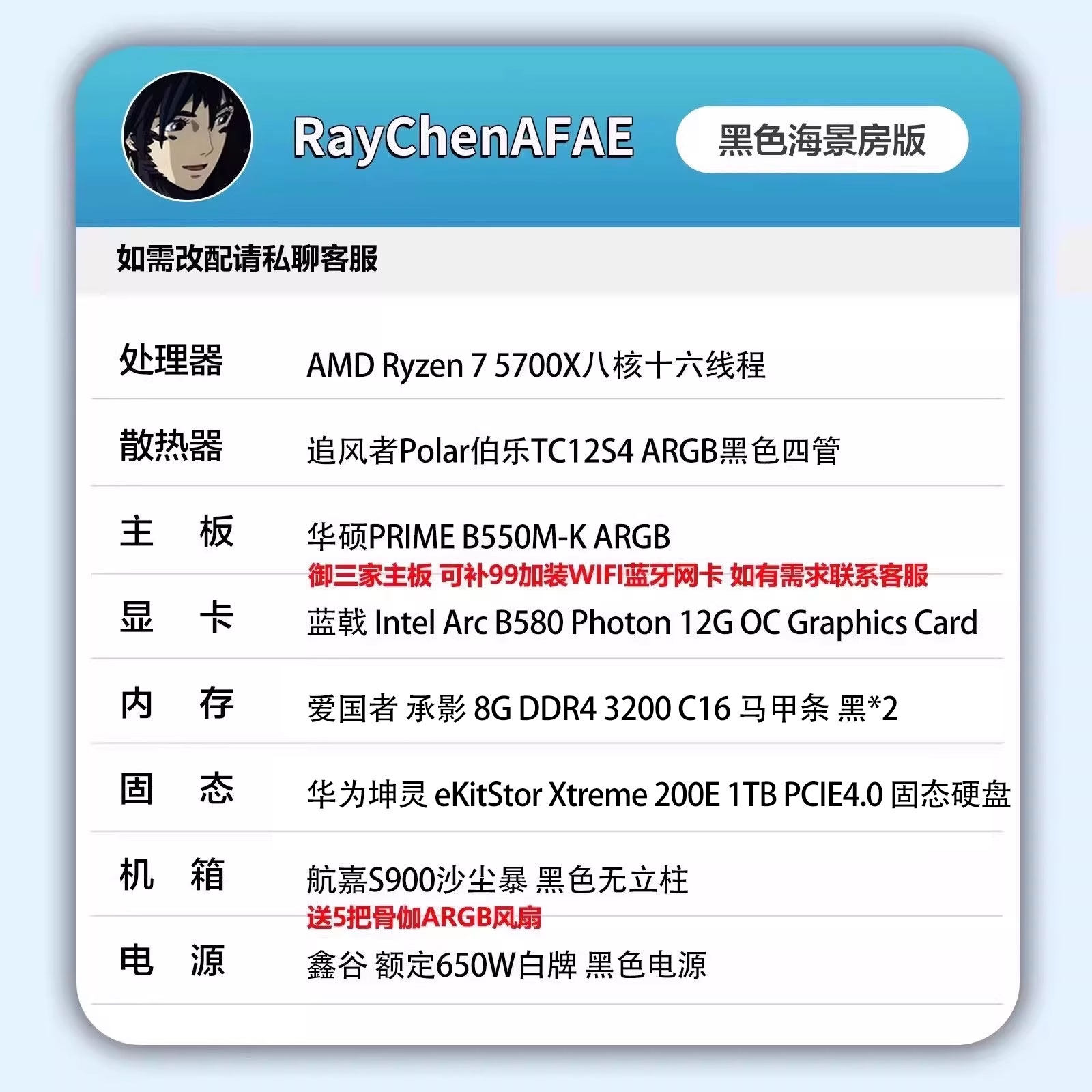IntelB580高颜值RGB海景房高性能DIY游戏生产力电脑主机 5700X