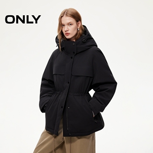 ONLY2025冬季 90白鸭绒三防双向拉链多口袋连帽户外风羽绒服女 新款