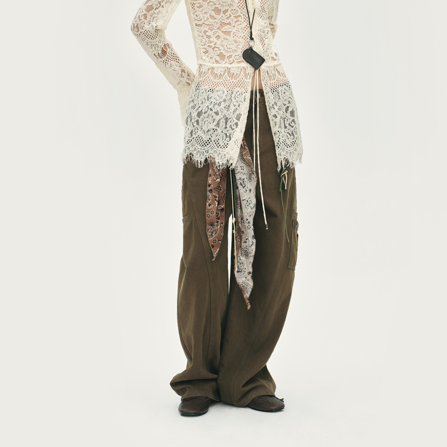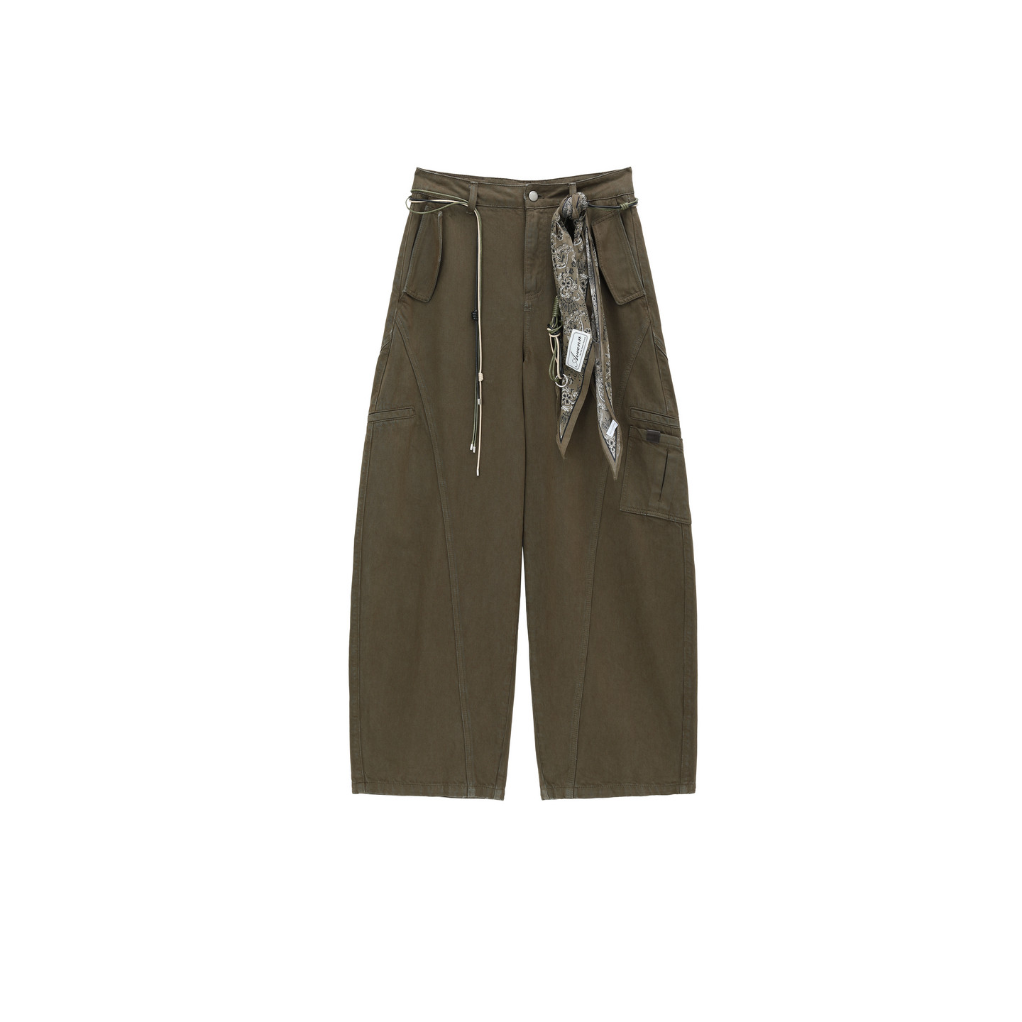 AVVENN设计师款 不对称口袋皮标AL91302614 弯刀牛仔裤