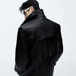 战壕大衣廓形英伦外套男秋 灰色巴尔玛肯风衣中长款 马登工装 德式