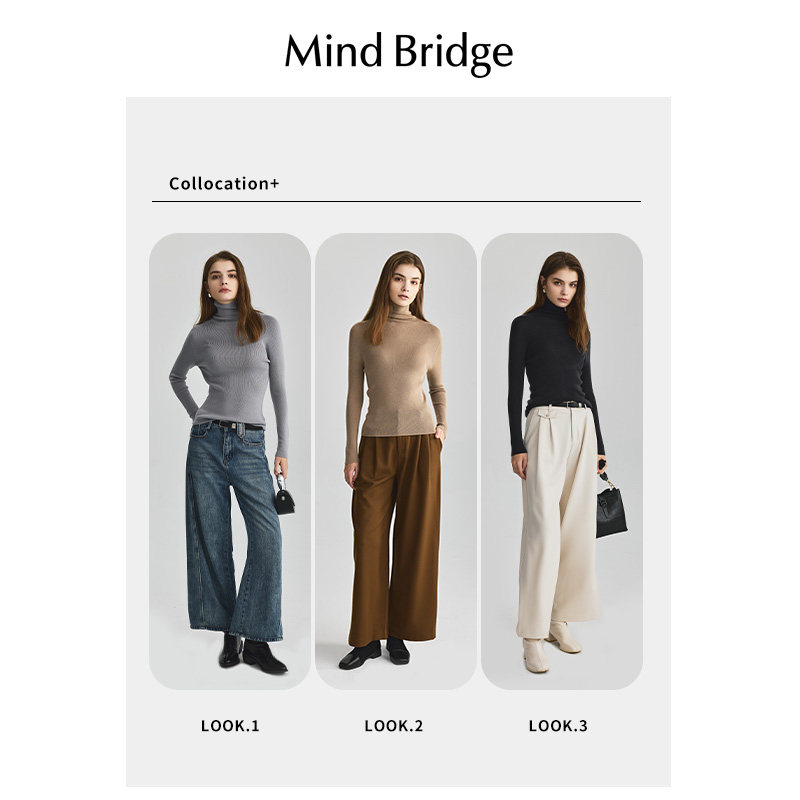 针织打底衫 品牌高级感羊毛衫 女半高领宽松毛衣秋冬加厚羊绒长袖
