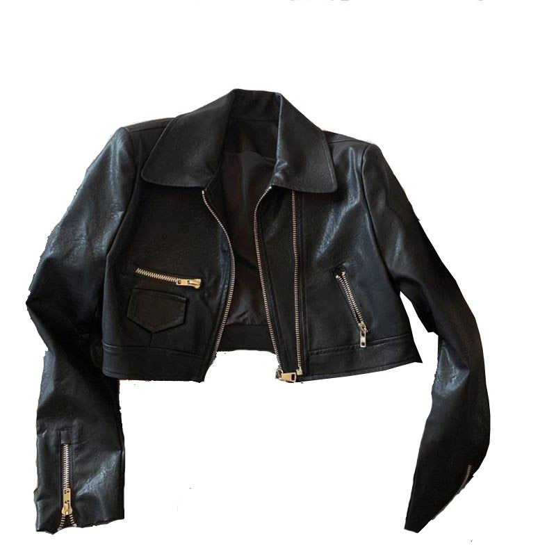 机车夹克潮 甜辣妹高腰短款 美式 复古黑色机车pu皮夹克外套女春秋季