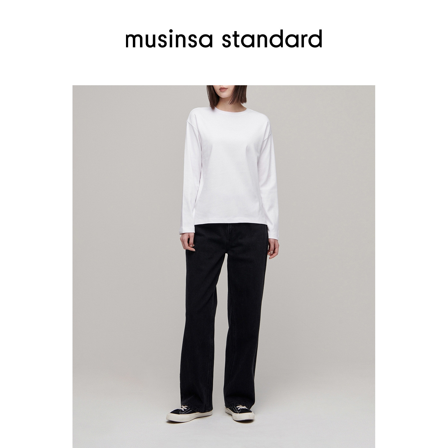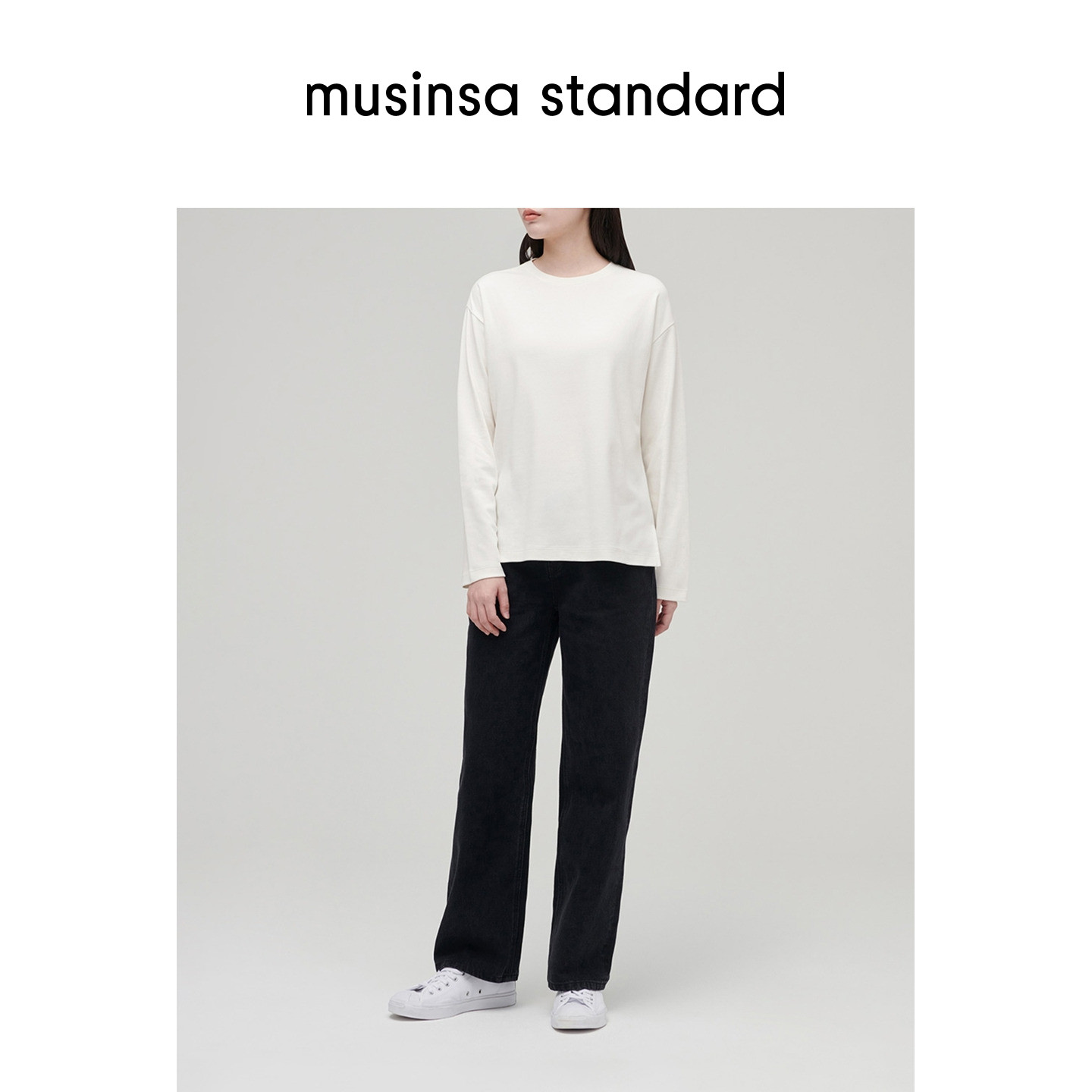 standard T恤musinsa 韩国25秋冬女士休闲基础款 纯色落肩圆领长袖
