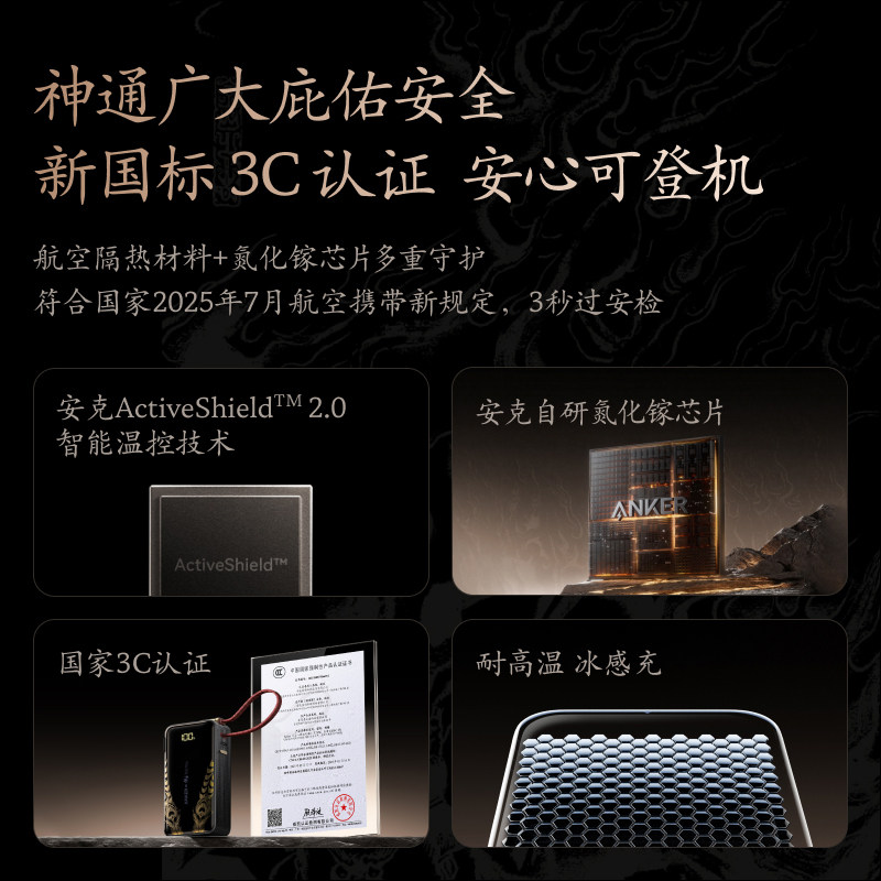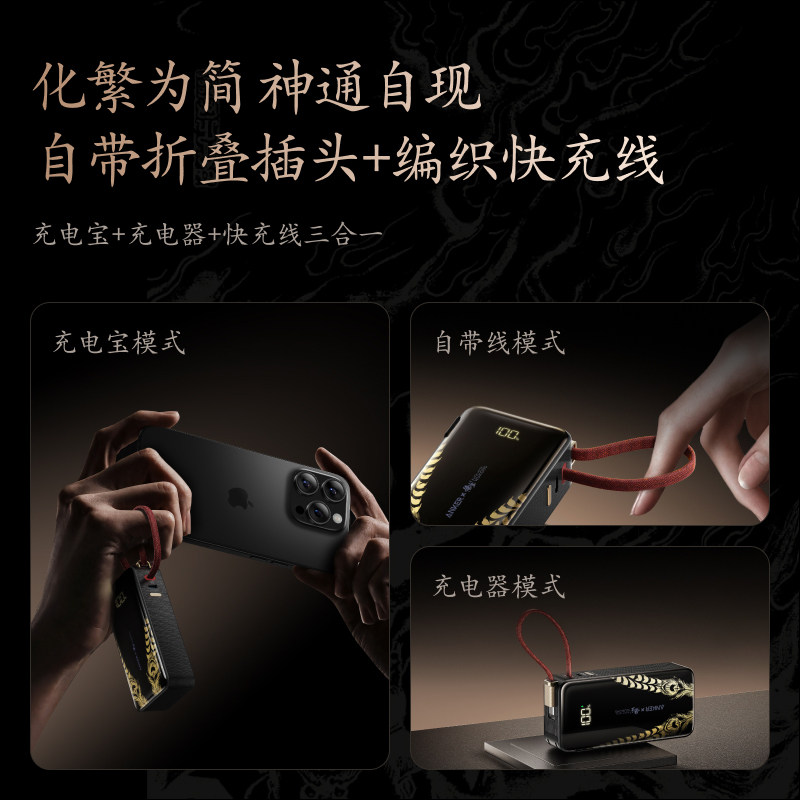 ANKER安克黑神话悟空联名款 三合一任逍遥充电宝带插头自带线移动电源3C认证可上飞机高铁快充适配苹果17手机