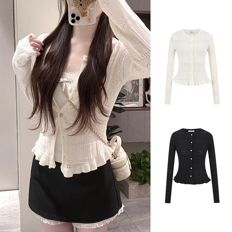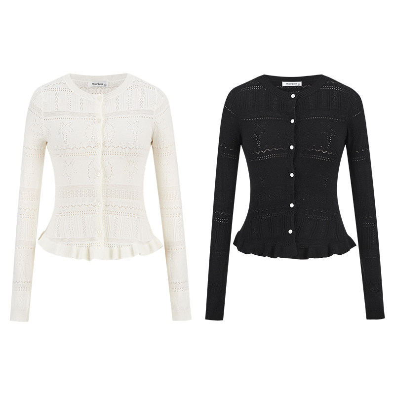MosesQueen魔西女王缕空针织开衫 女春秋设计感外搭吊带上衣两件套