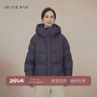 纯色连帽外套 龟背短款 森马羽绒服女士三防发热抗静电2025冬季 新款