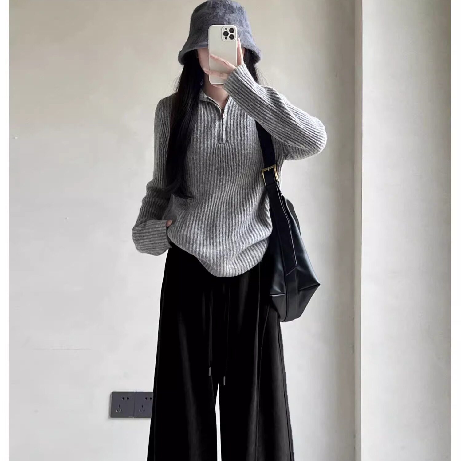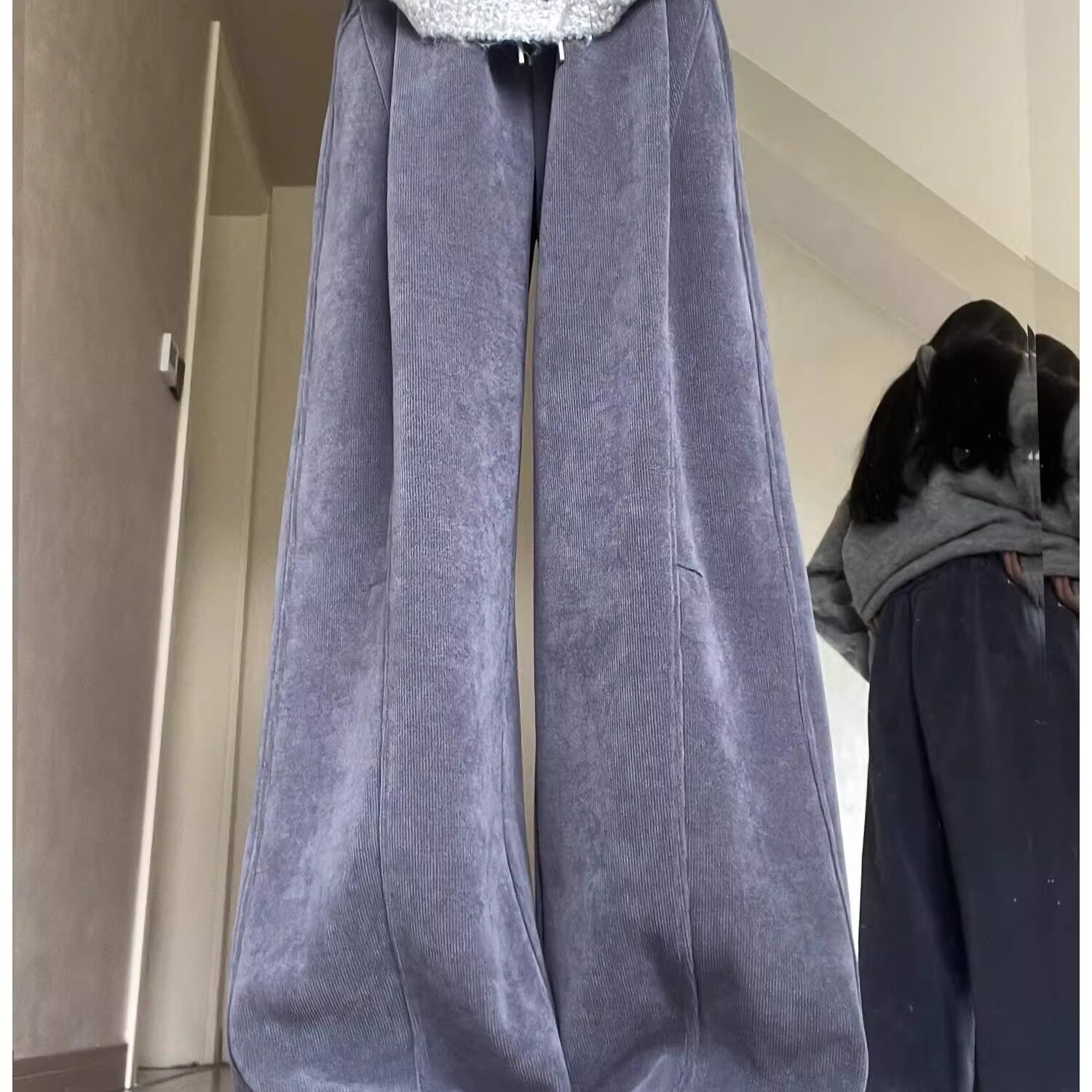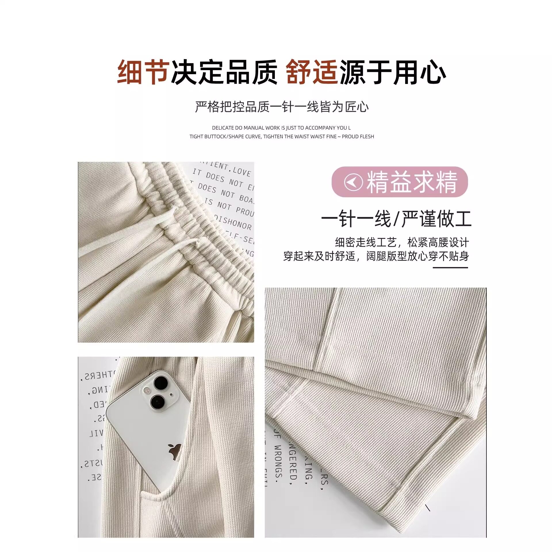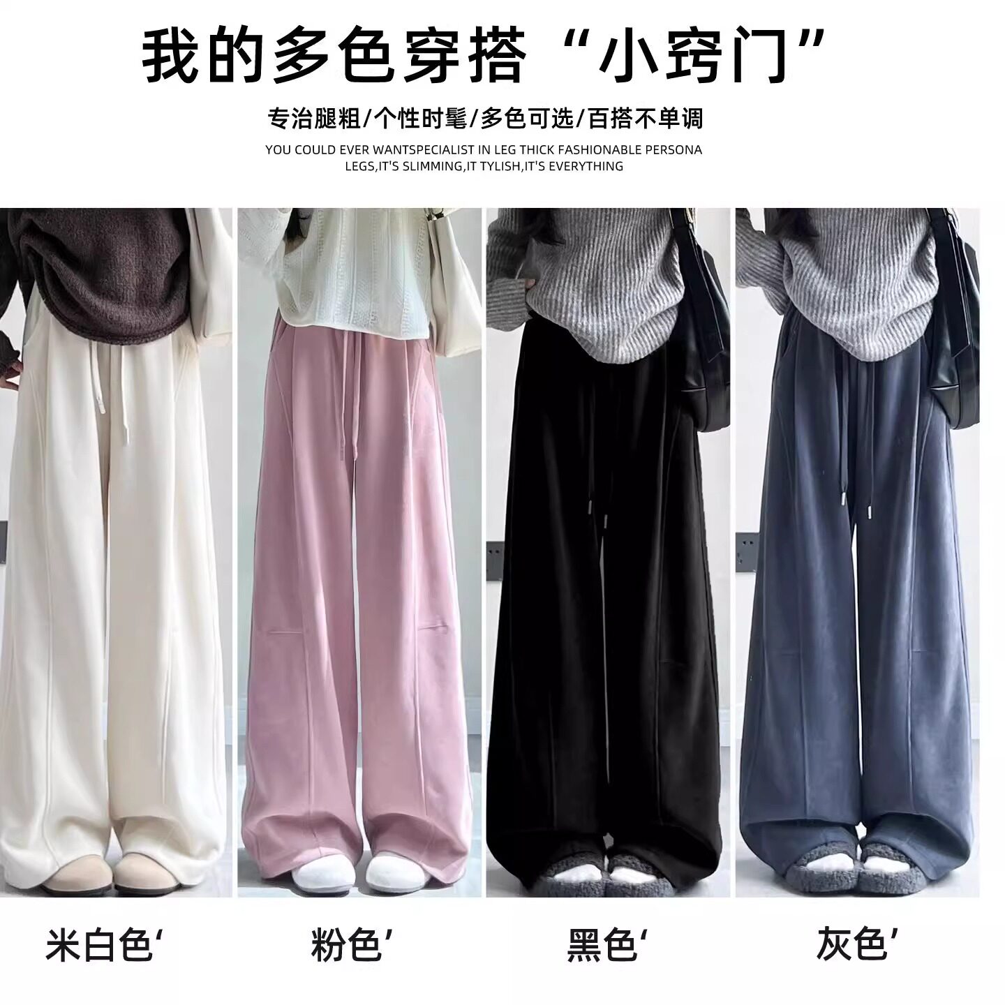 加加厚保暖裤 粉色抽绳阔腿裤 遮肉显瘦弯刀裤 加绒休闲裤 子 女特大码