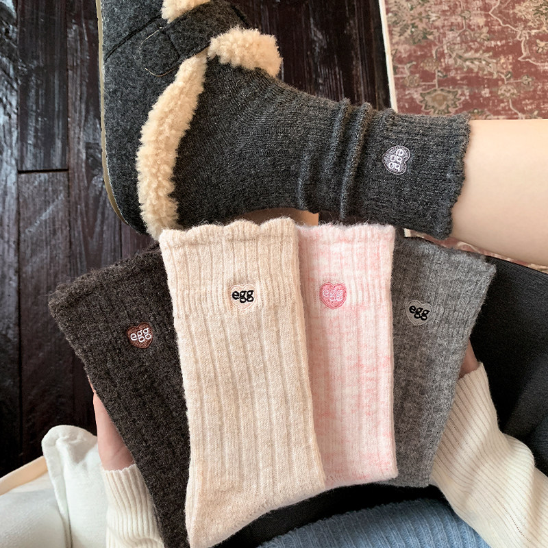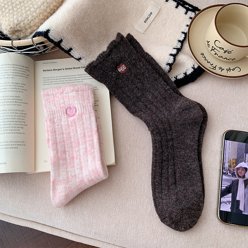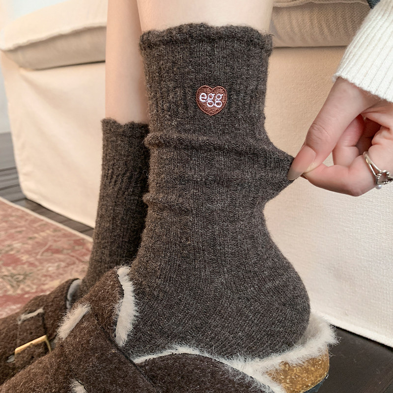 日系复古镂空羊毛小腿袜子女中筒堆堆袜秋冬保暖配靴子长筒袜靴袜
