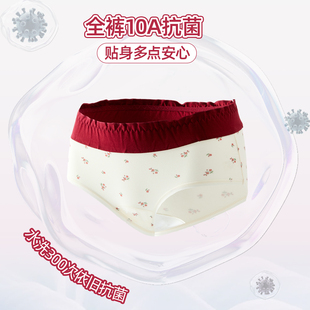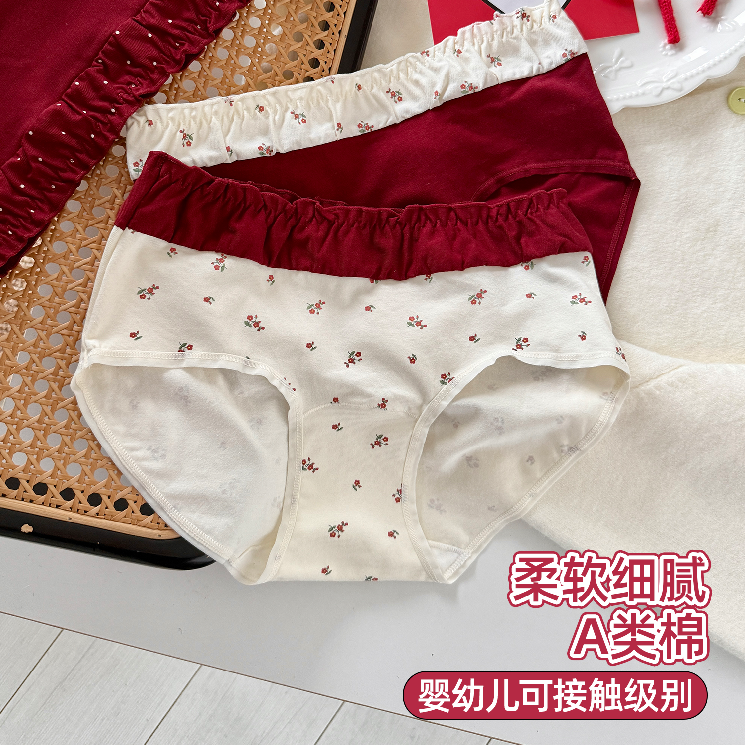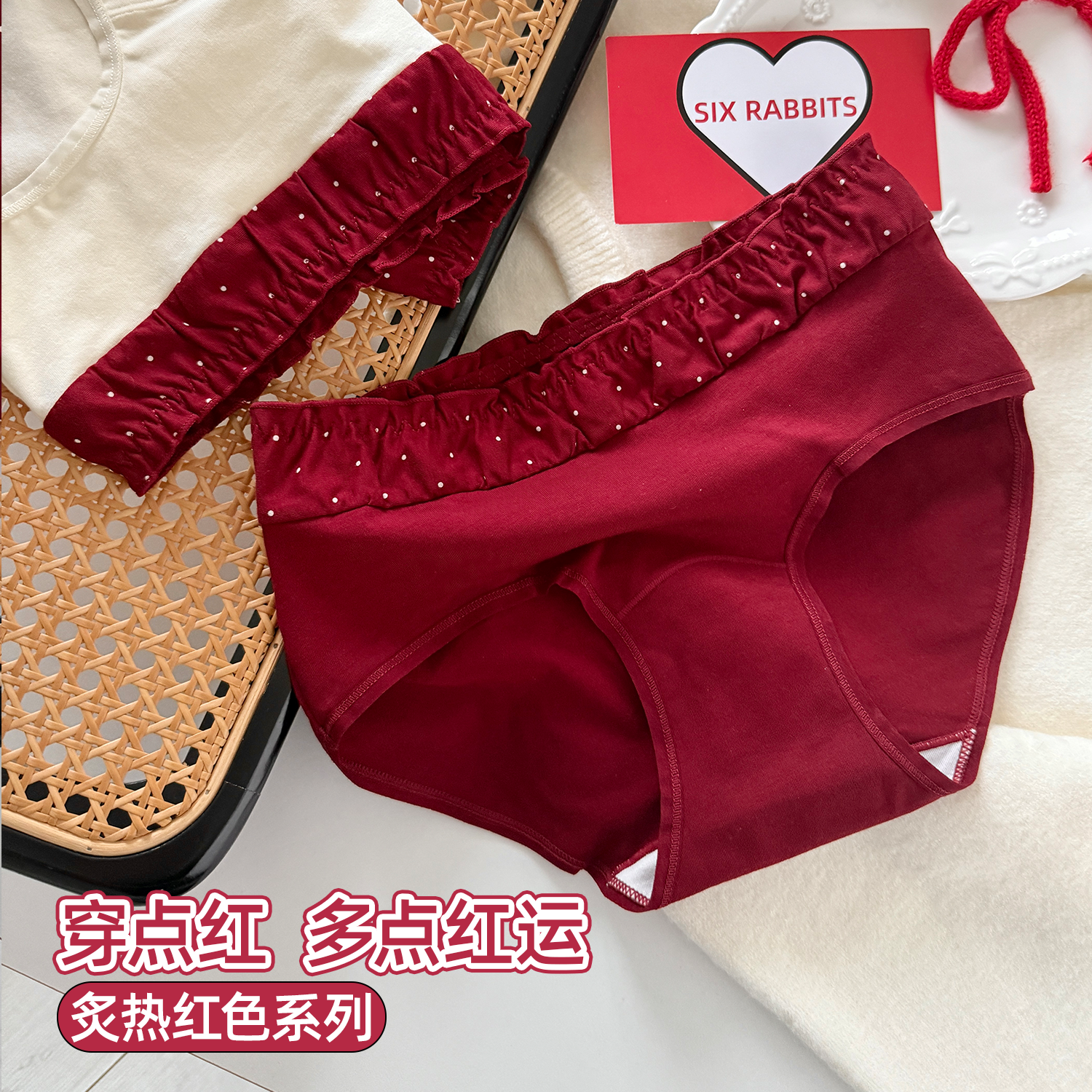 女A类棉10A抑菌结婚礼盒本命年中腰三角裤 六只兔子3条装 红色内裤