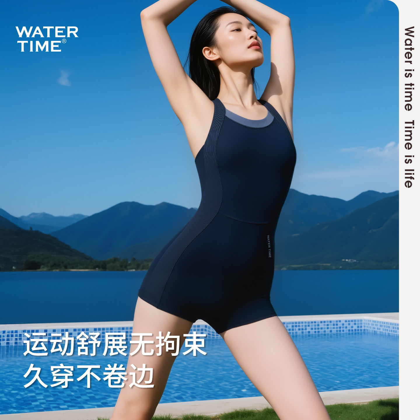 WaterTime泳衣女士新款 平角保守游泳馆专用微胖度假温泉游泳衣