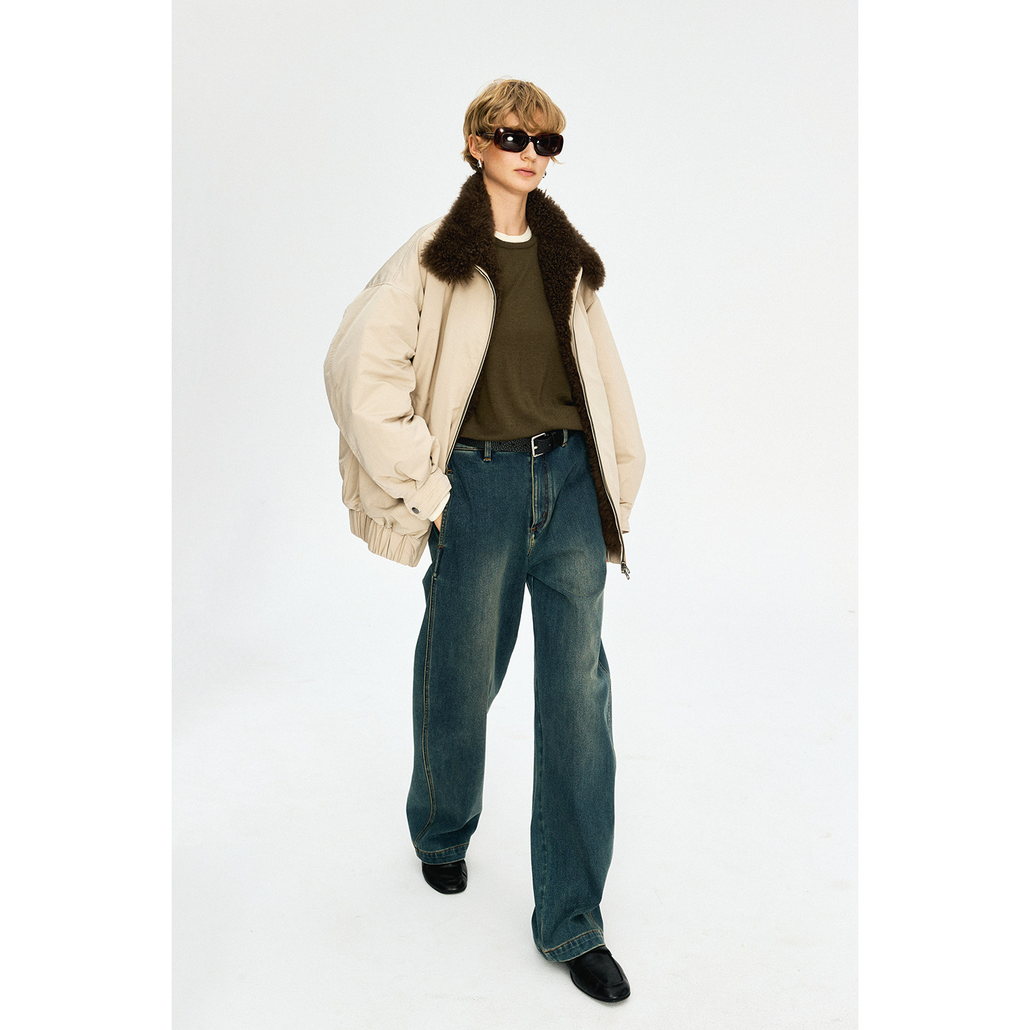 「原链接购买」复古侧缝前移抓绒茧型香蕉及地牛仔裤 镰刀裤