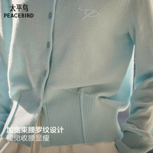 26春新全羊毛盐水蓝针织衫 太平鸟氧气开衫 A1EDG1128 商场同款