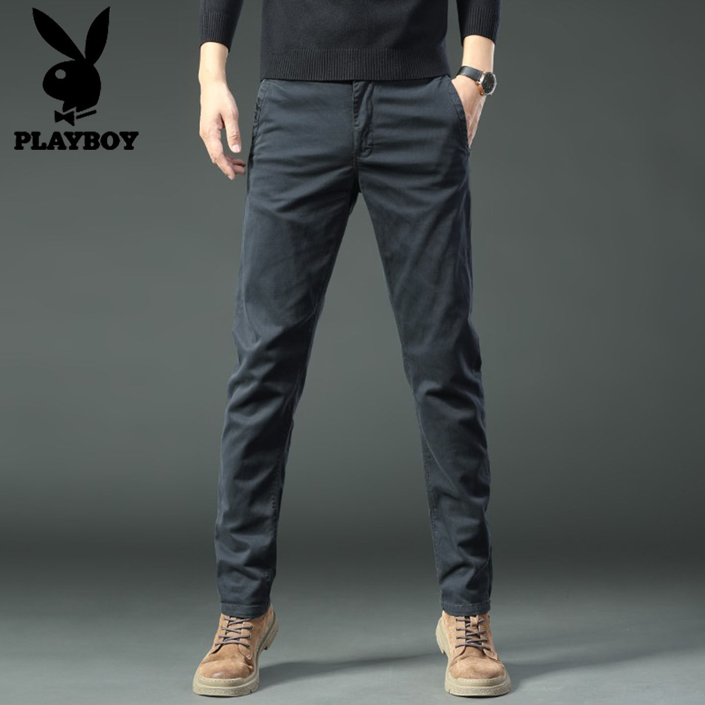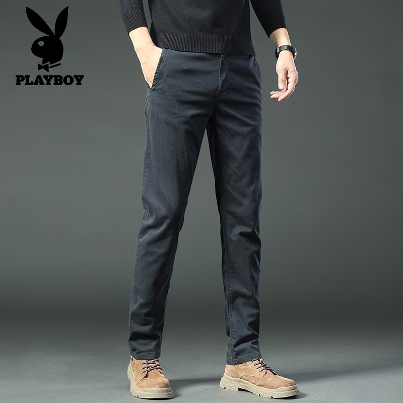 秋冬季 加厚高端弹力潮流加绒裤 修身 新款 子 直筒休闲裤 花花公子男士