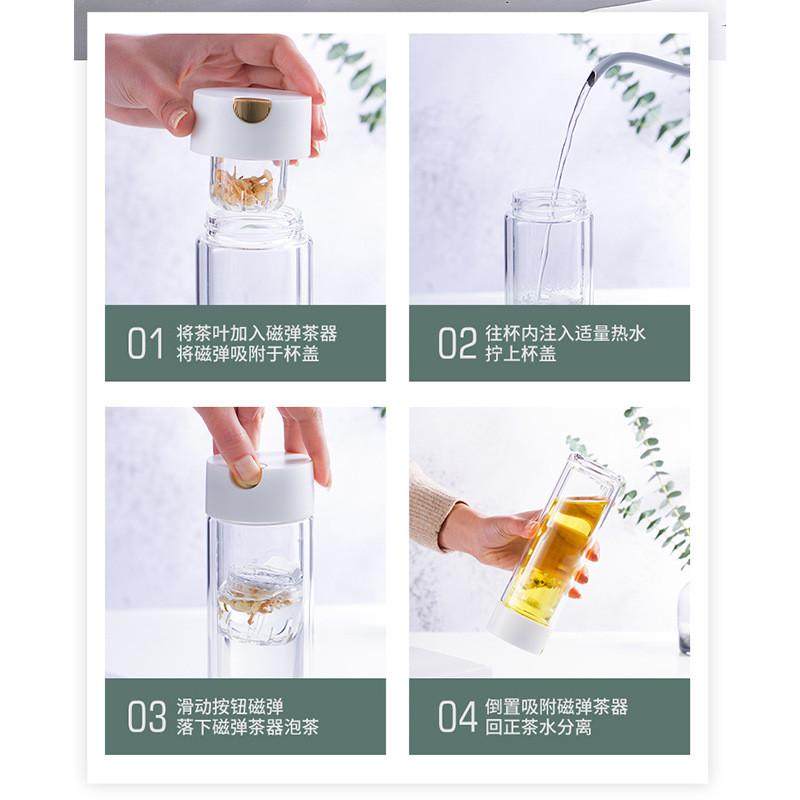 磁弹泡茶杯茶水分离玻璃杯女士大容量高颜值磁吸磁弹水杯茶杯