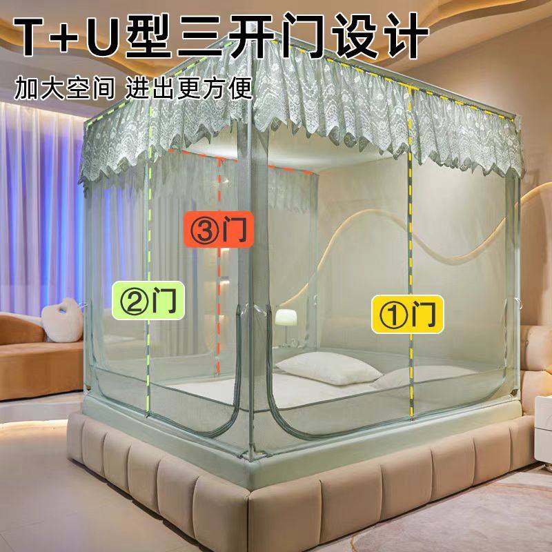 新款 蚊帐1.8米1.0m支架1.2m1.5米家用纹帐三开门卧室落地加粗防蚊