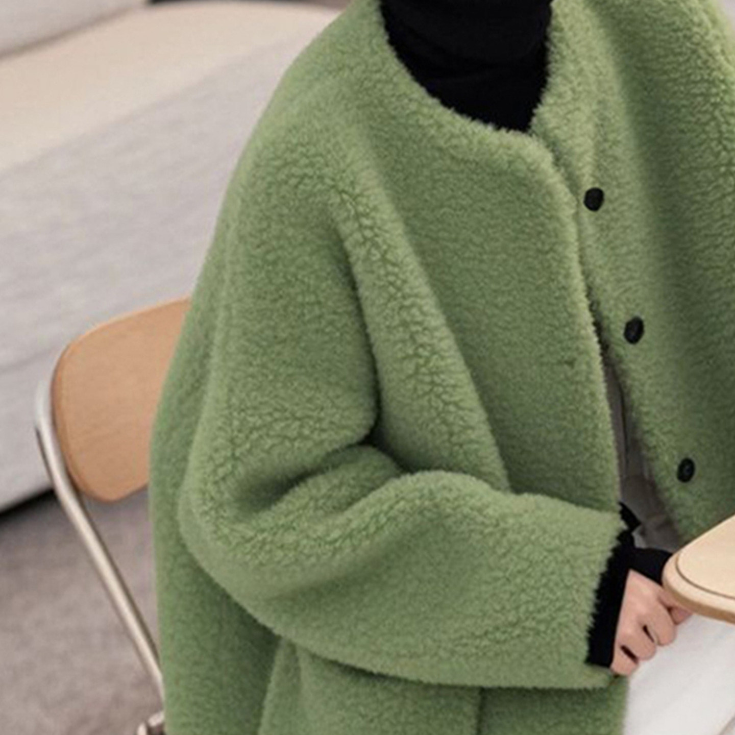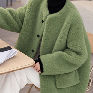 外贸撤回时尚 洋气独特超好看高级感休闲百搭小香风绿色羊羔毛外套