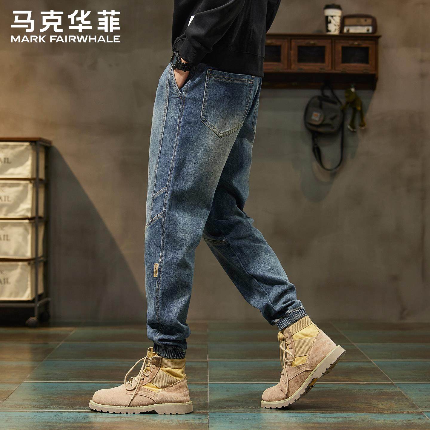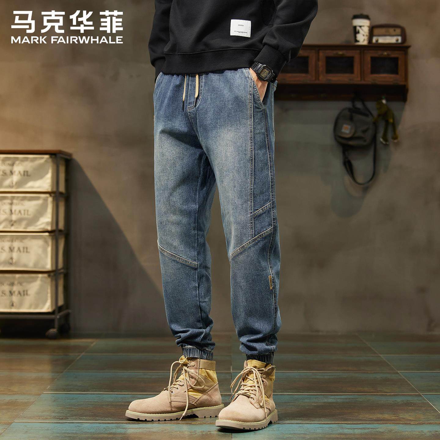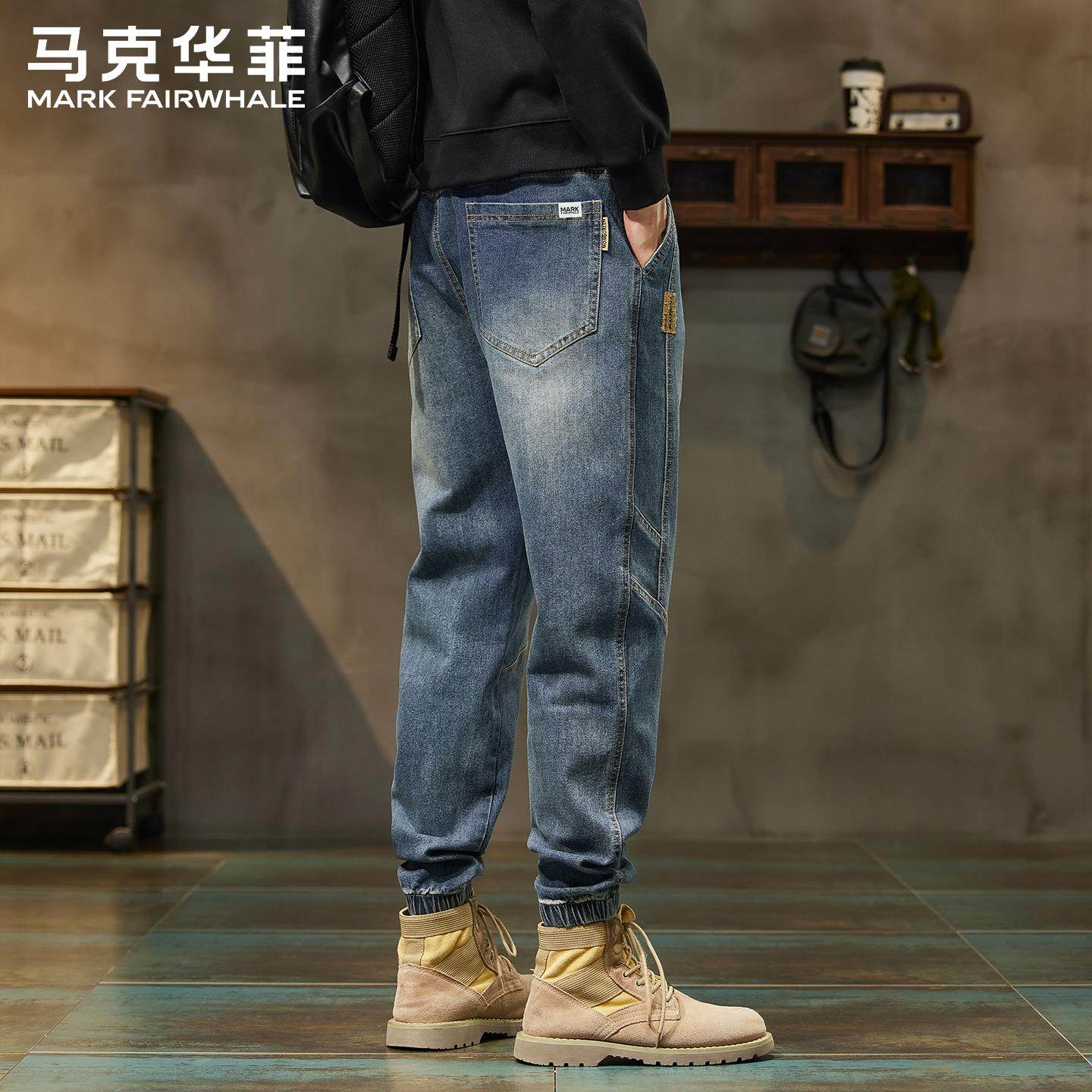 复古牛仔裤 宽松束脚哈伦百搭休闲长裤 男士 新款 子 秋季 马克华菲美式