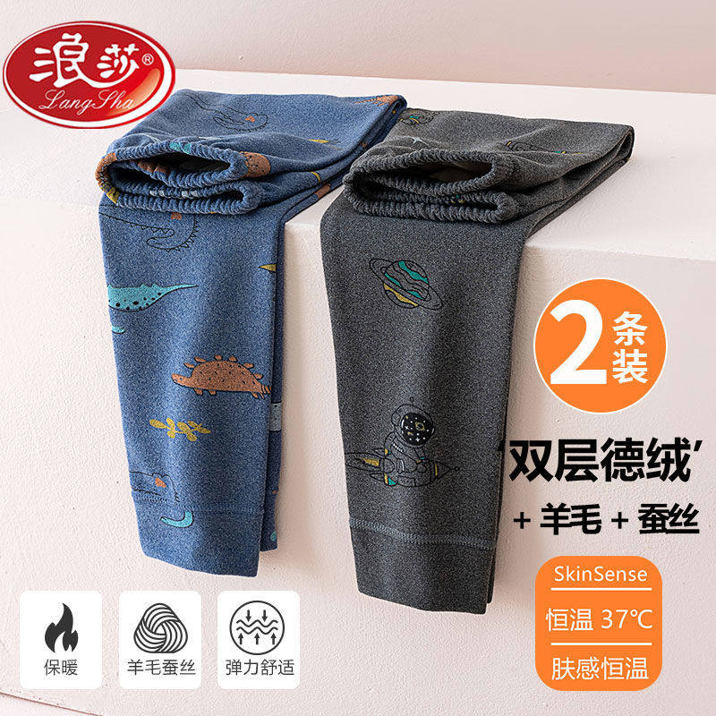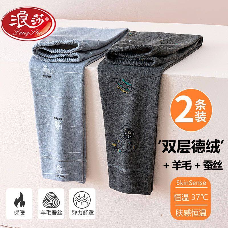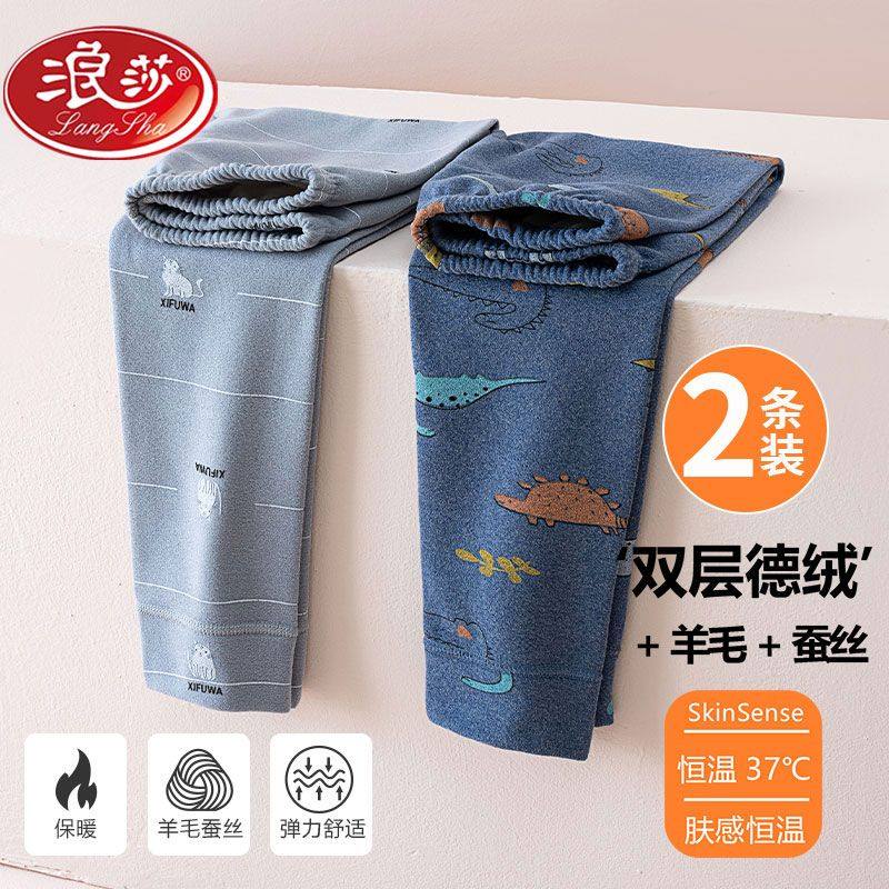 内线裤 浪莎德绒儿童保暖裤 女童打底裤 棉毛裤 蚕丝羊绒加厚男童秋裤