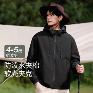 班尼路S&K软壳连帽外套男秋冬季 冲锋夹克A 军绿夹棉保暖防泼水男士
