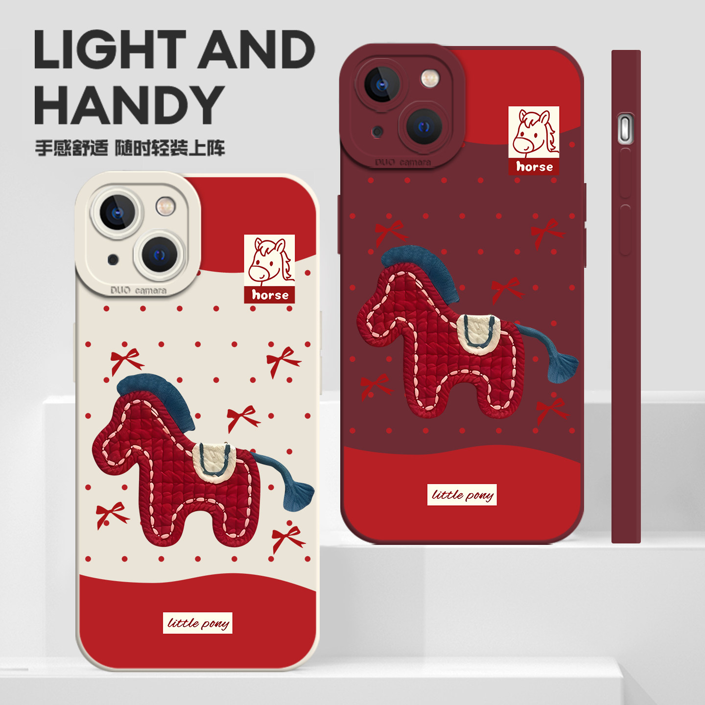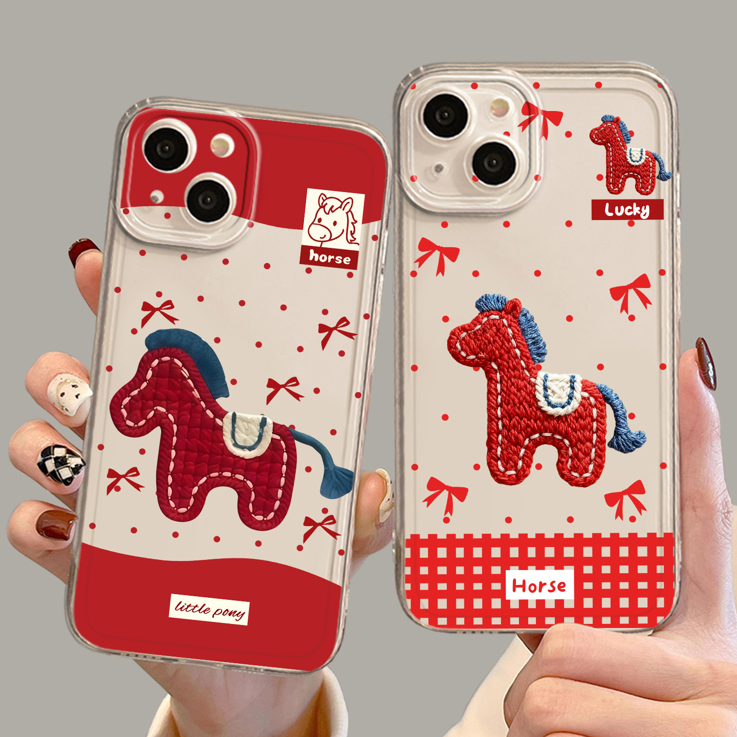 适用苹果17手机壳iphone16promax刺绣小马15plus新款 14pro红色13mini马年12新年11本命年8p波点7过年xs女xr