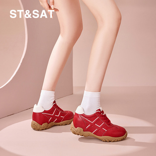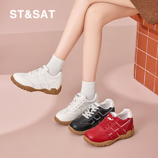 加绒休闲运动鞋 厚底德训鞋 2025秋冬新款 小白鞋 红 小个子内增高女鞋