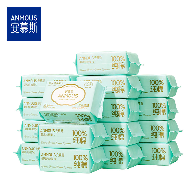 安慕斯100%棉柔巾洗脸巾全棉一次性洁面巾擦脸巾加厚纸巾80抽