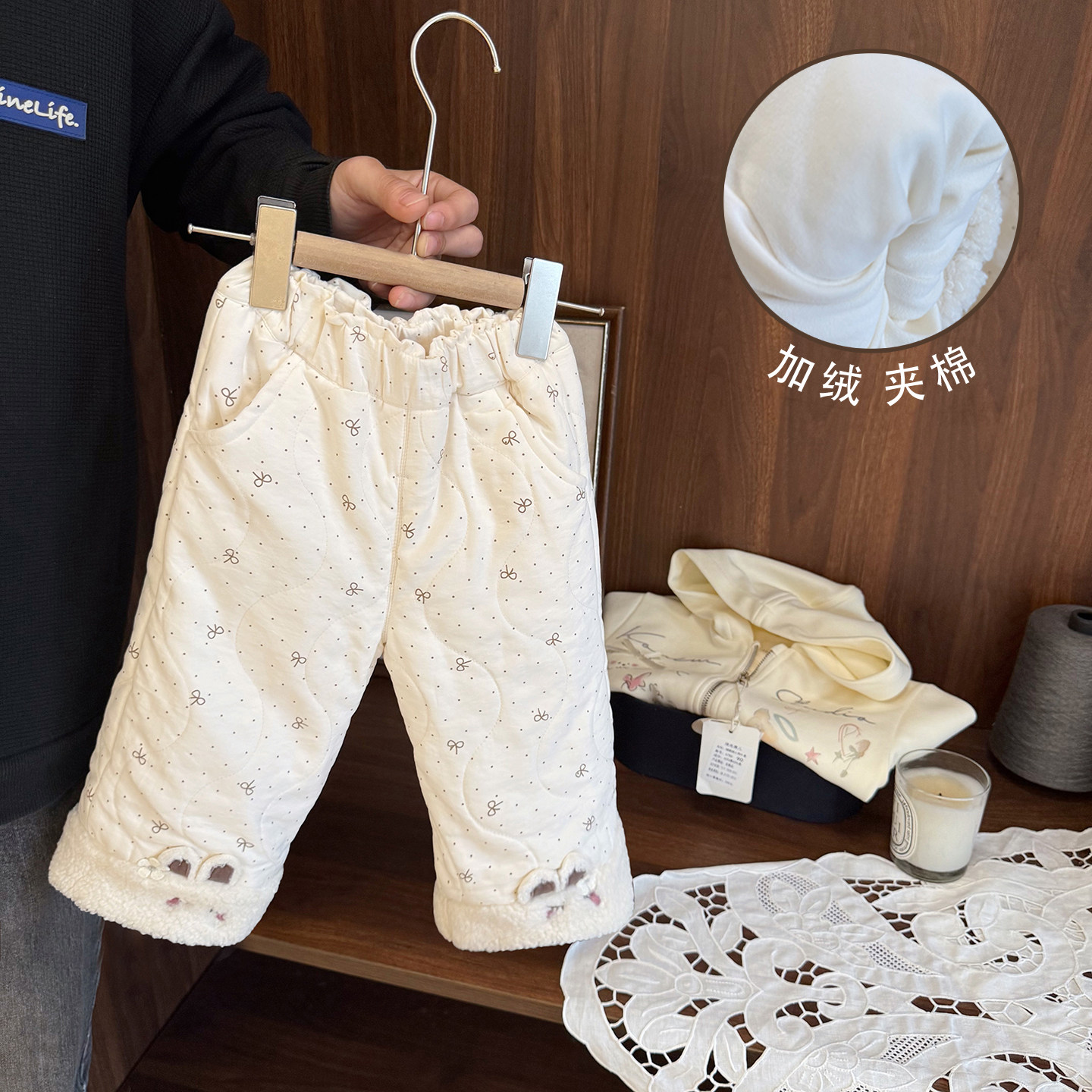 女童加厚加绒宽松直筒小棉裤 女宝宝亲肤柔软夹棉休闲裤 女婴儿冬装