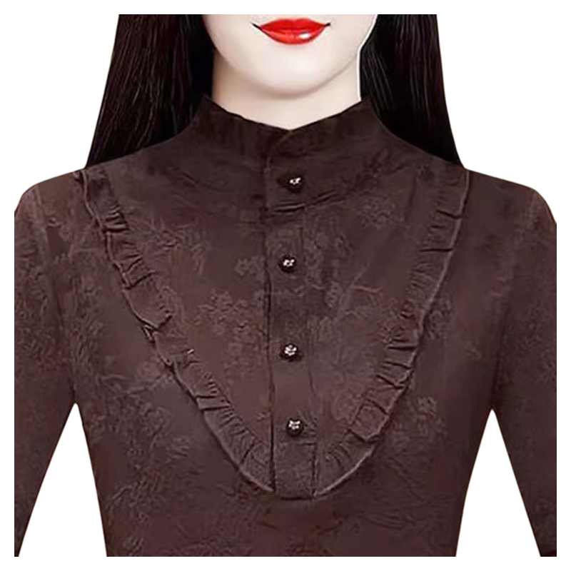 德绒打底衫 女装 时尚 上衣半高领荷叶边长袖 洋气大码 20226秋冬新款