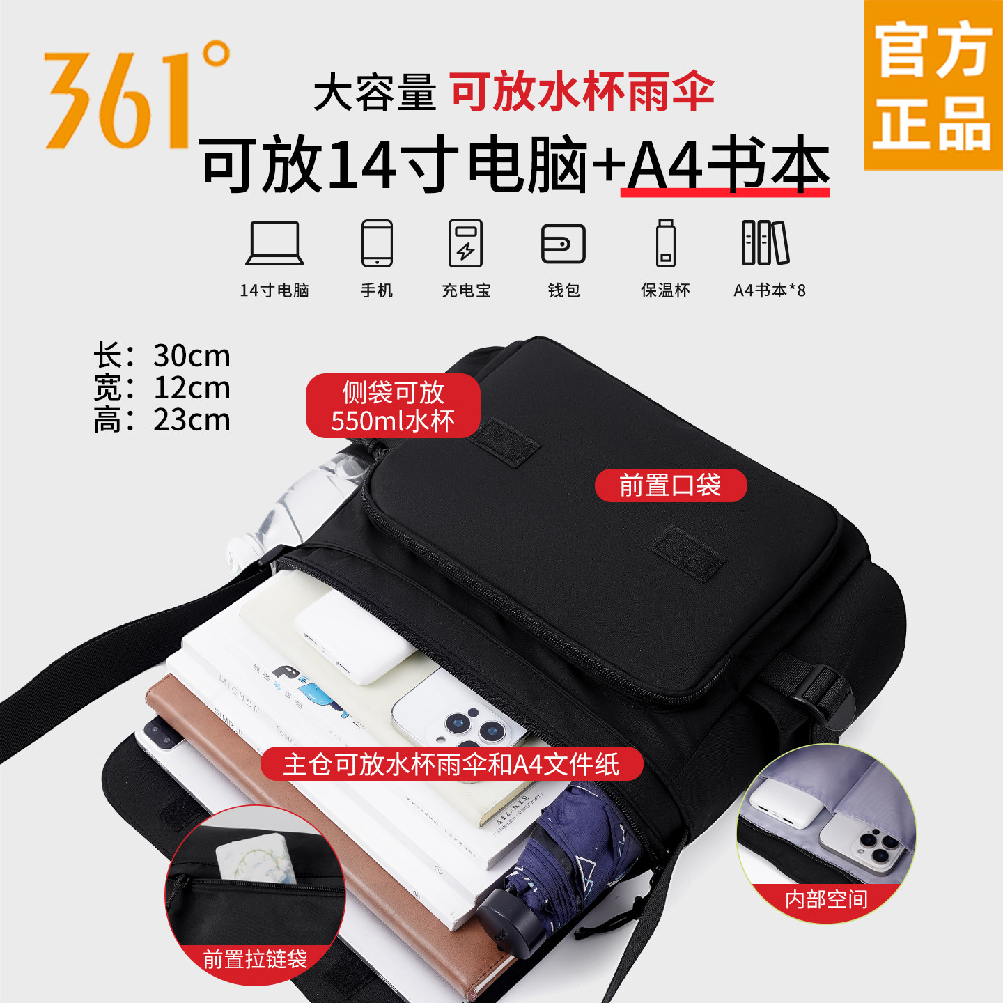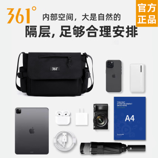 休闲百搭 大容量单肩包通勤外出背包男款 361°男士 斜挎包2025新款